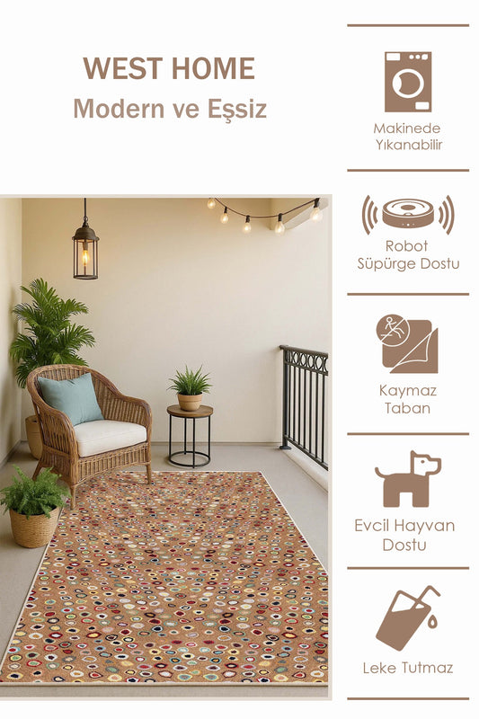 West Home Dijital Baskılı Yıkanabilir Kaymaz Taban Salon, Mutfak ve Yolluk Halısı-447 Sand