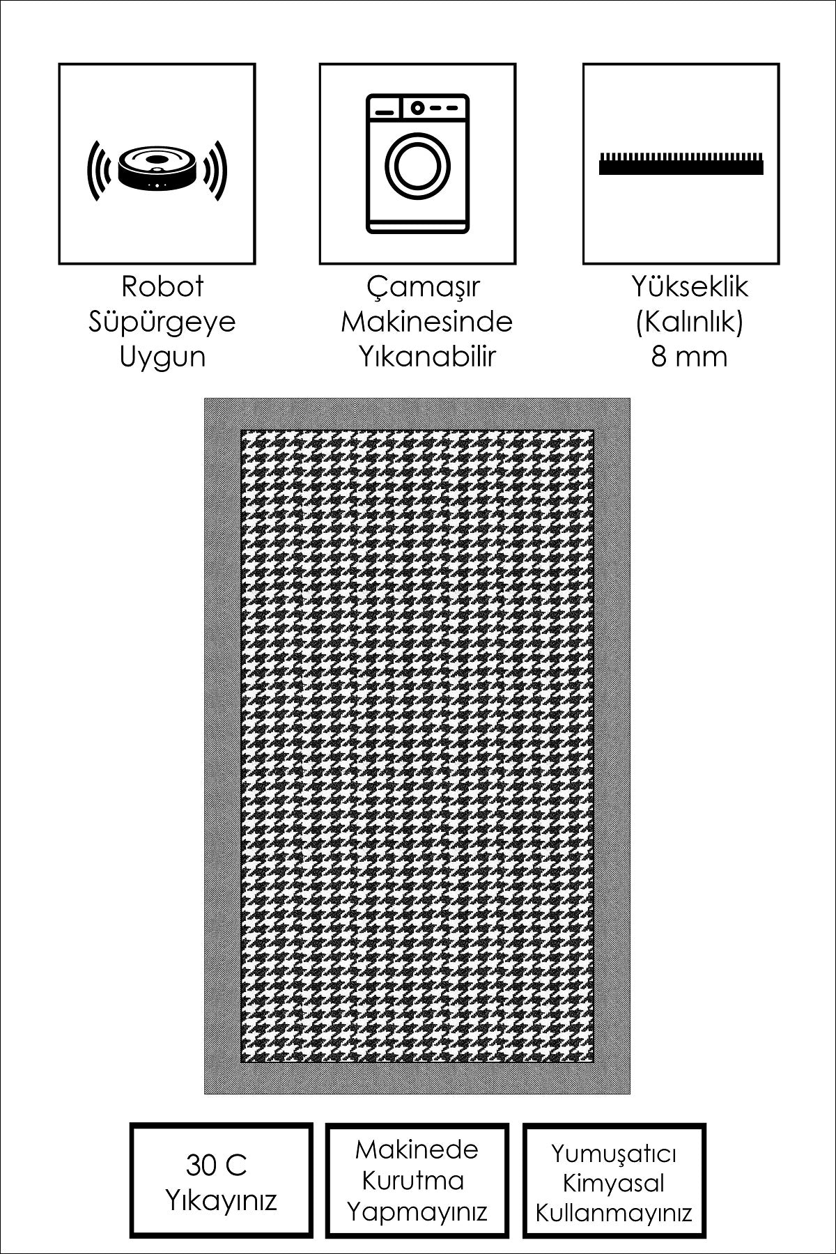 West Home Dijital Baskılı Yıkanabilir Kaymaz Taban Salon, Mutfak ve Yolluk Halısı-446 Grey