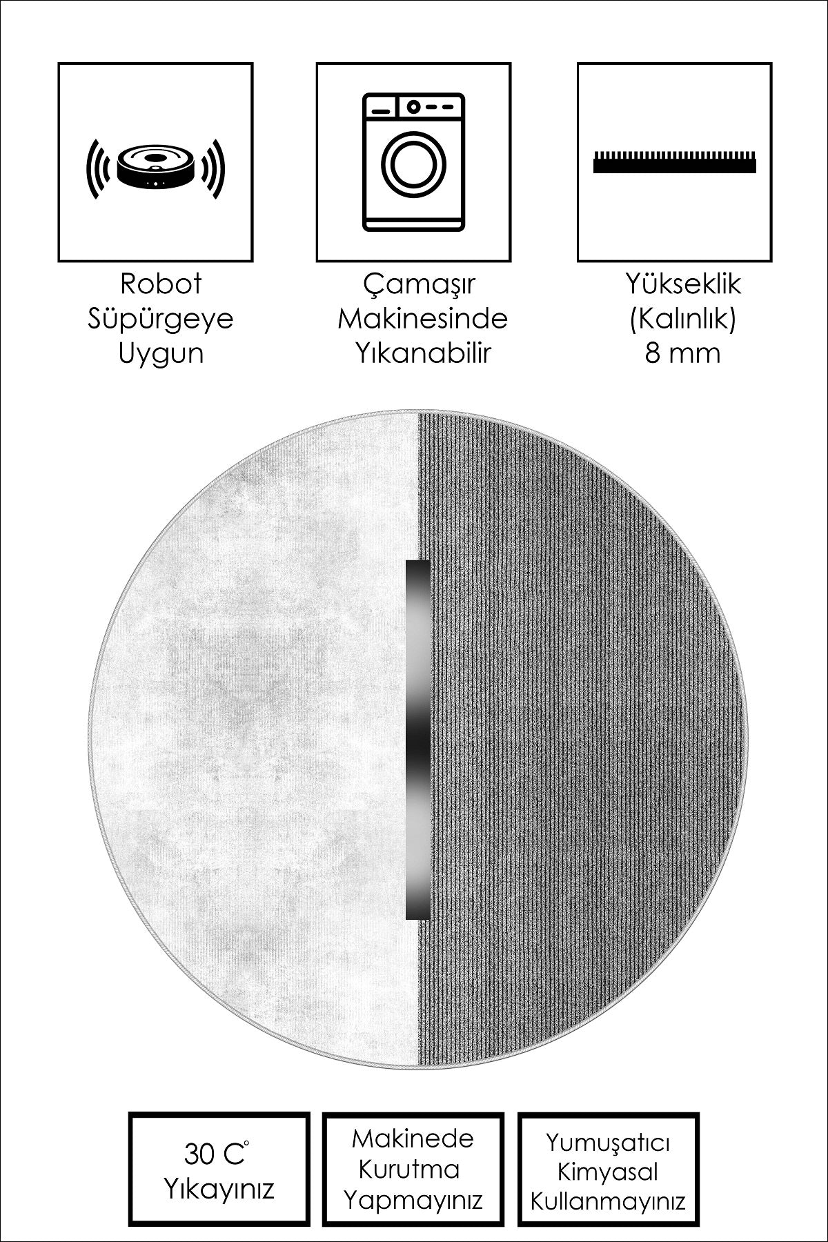 West Home Dijital Baskılı Yıkanabilir Kaymaz Taban Salon, Mutfak ve Yolluk Halısı-559 Grey