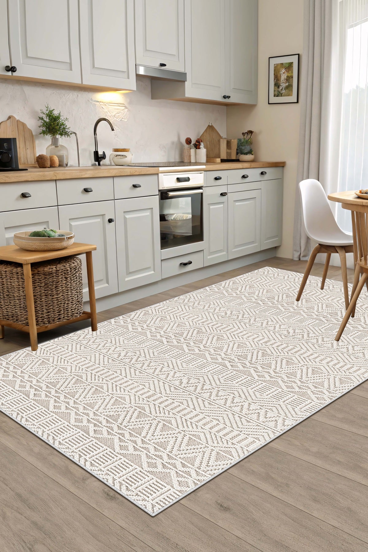 West Home Dijital Baskılı Yıkanabilir Kaymaz Taban Salon, Mutfak ve Yolluk Halısı-455 Beige