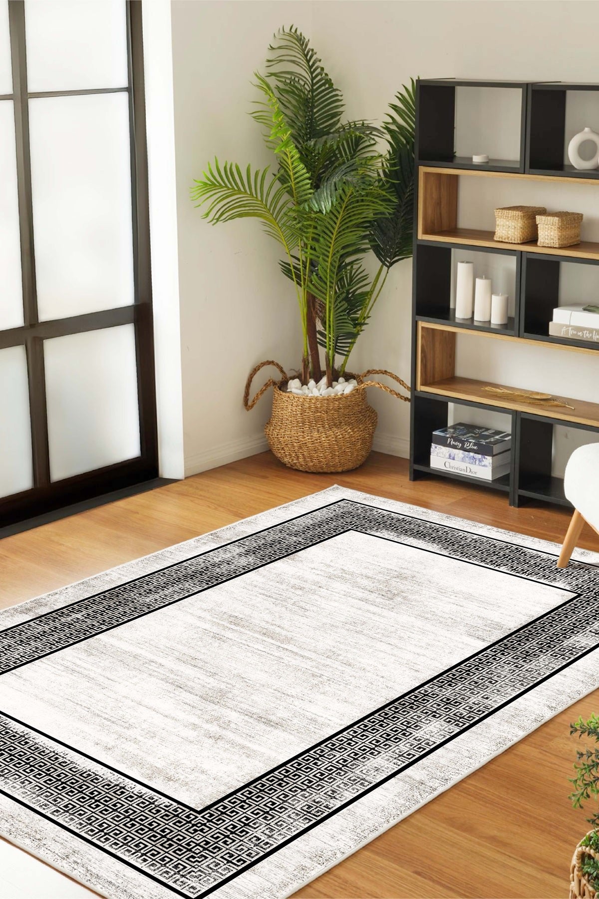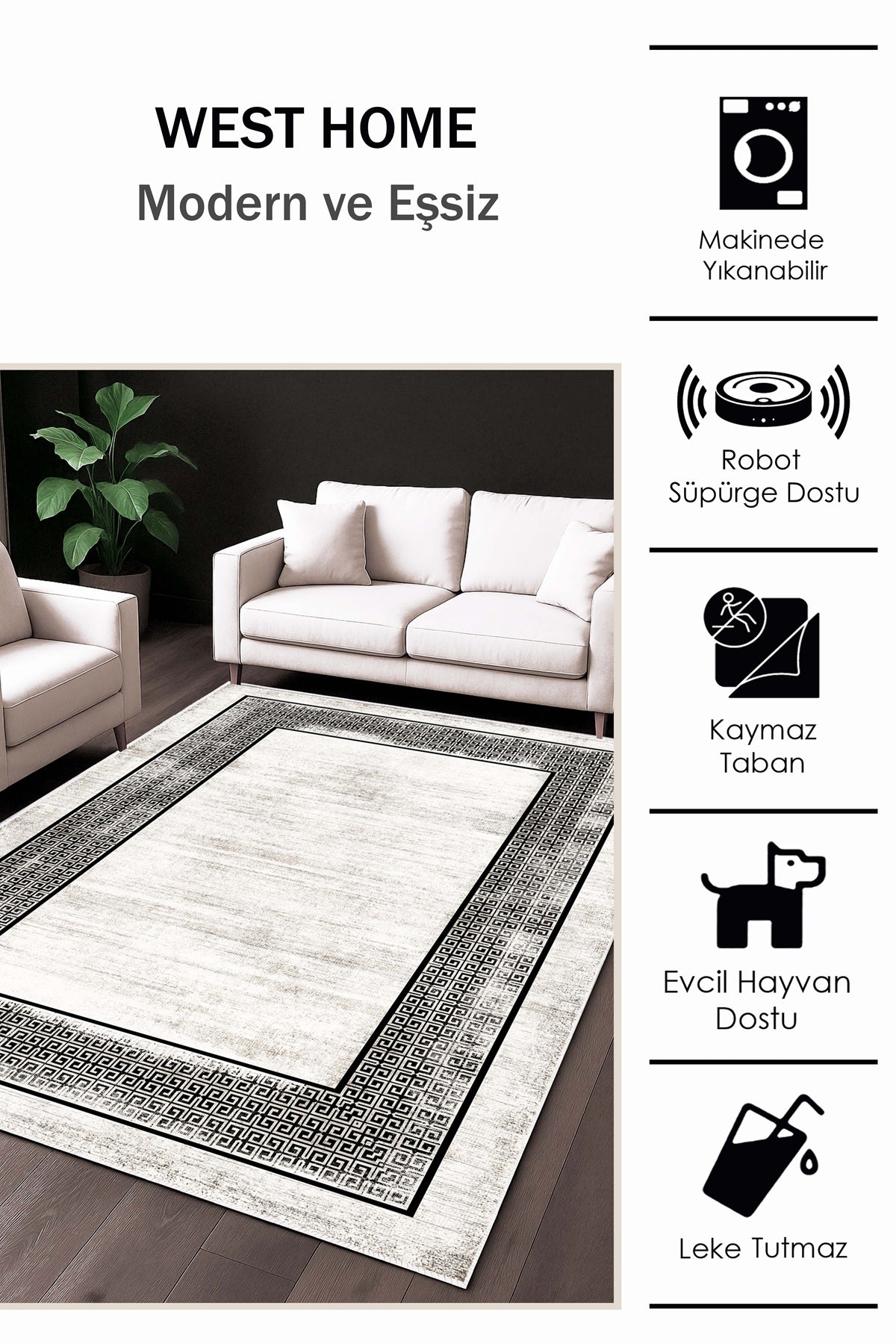 West Home Dijital Baskılı Yıkanabilir Kaymaz Taban Salon, Mutfak ve Yolluk Halısı-693 White