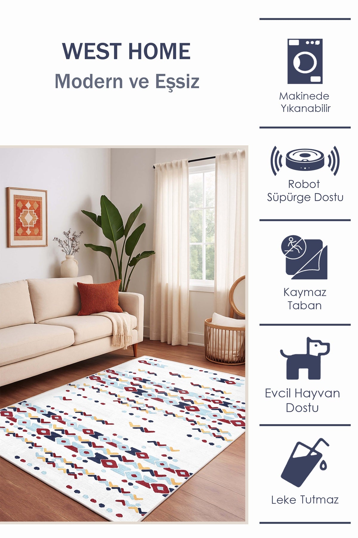 West Home Dijital Baskılı Yıkanabilir Kaymaz Taban Salon, Mutfak ve Yolluk Halısı-712 Multy