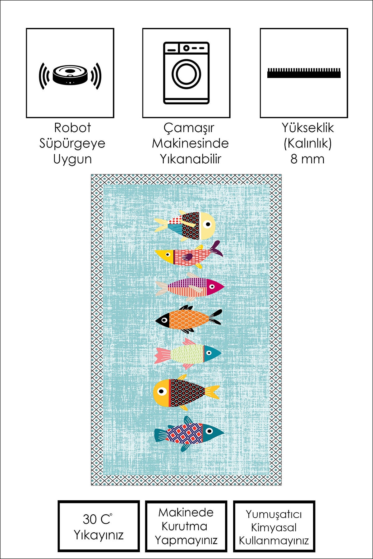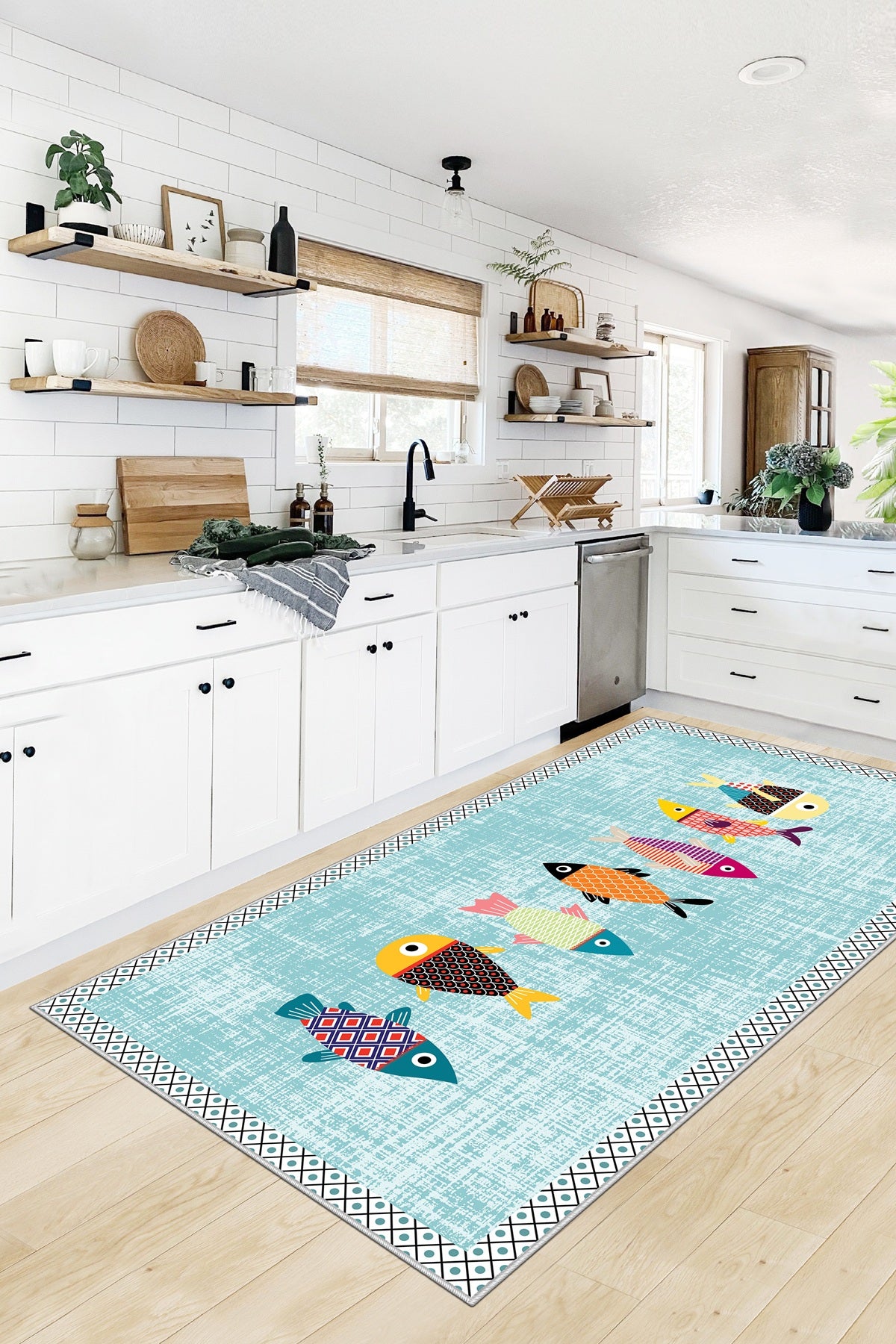 West Home Dijital Baskılı Yıkanabilir Kaymaz Taban Mutfak Halısı-342 Turquoise