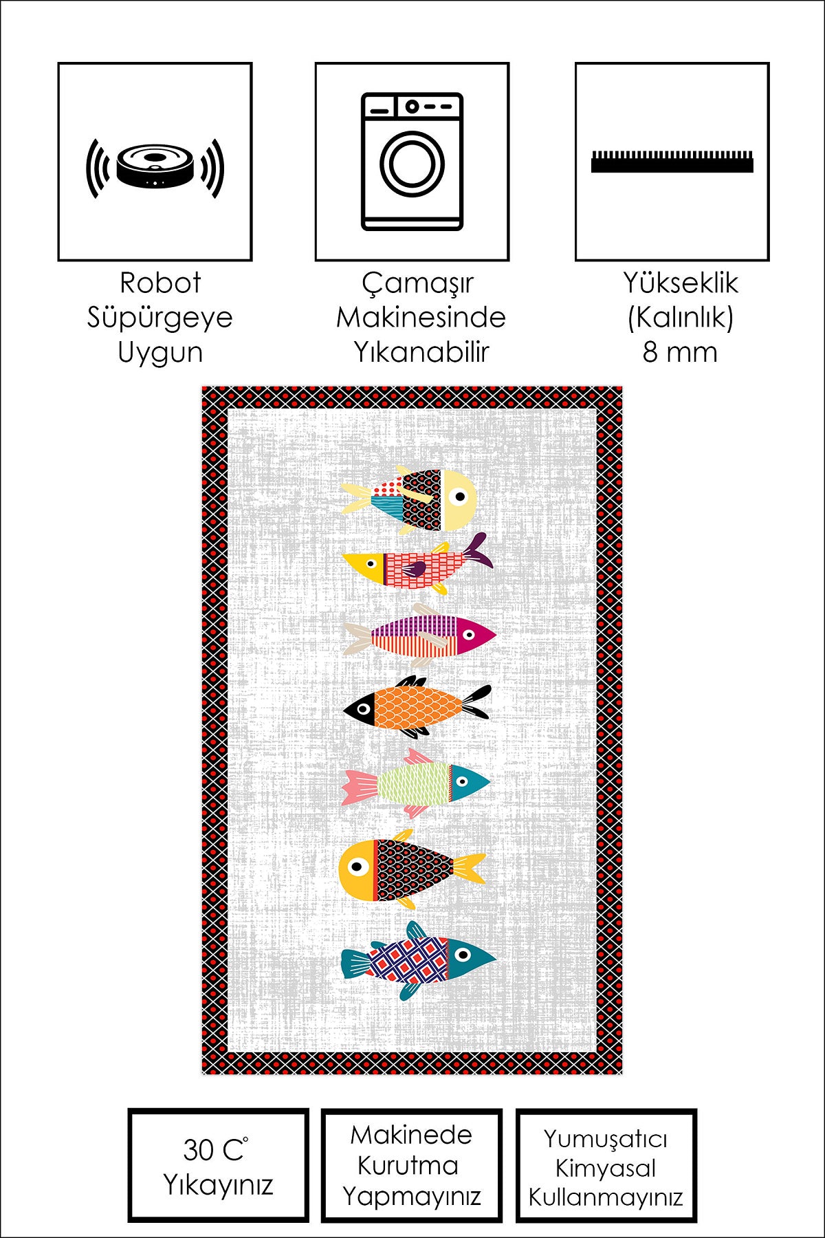 West Home Dijital Baskılı Yıkanabilir Kaymaz Taban Salon, Mutfak ve Yolluk Halısı-445 Grey