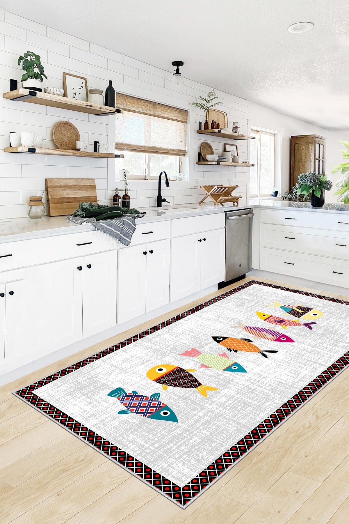 West Home Dijital Baskılı Yıkanabilir Kaymaz Taban Mutfak Halısı-342 White