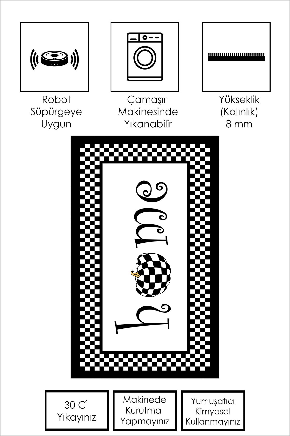 West Home Dijital Baskılı Yıkanabilir Kaymaz Taban Mutfak Halısı-358 Black