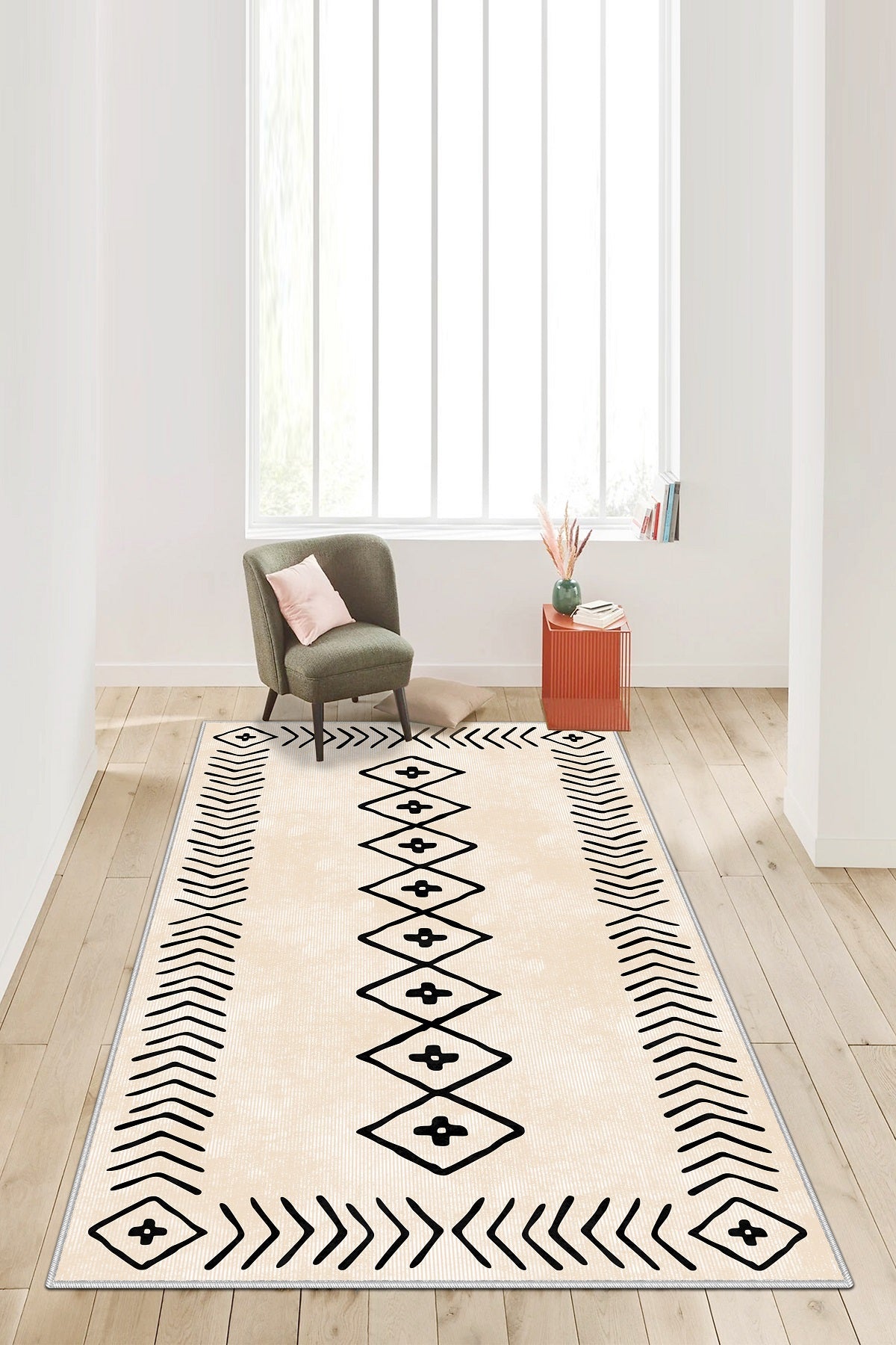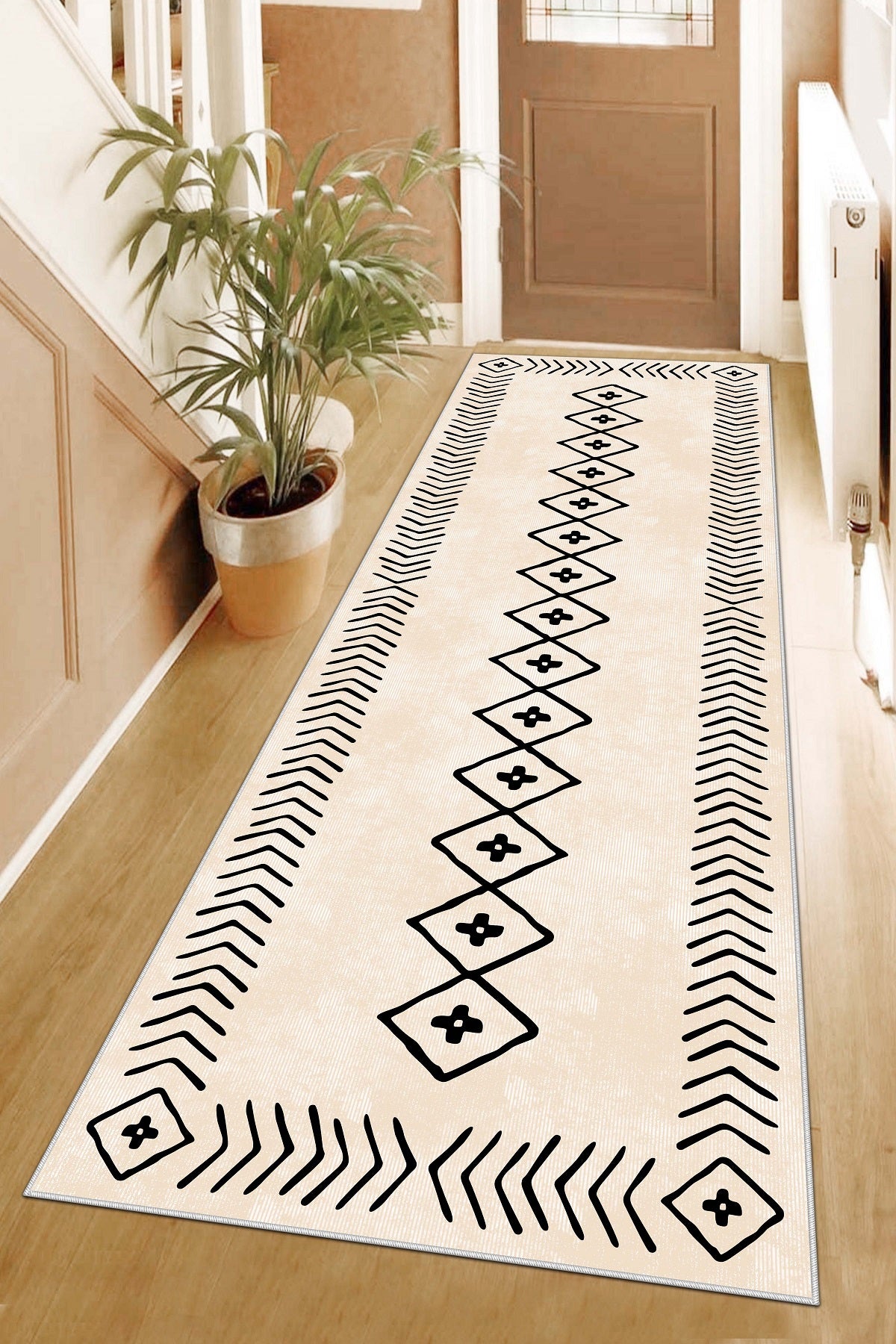 West Home Dijital Baskılı Yıkanabilir Kaymaz Taban Salon, Mutfak ve Yolluk Halısı-455 Beige