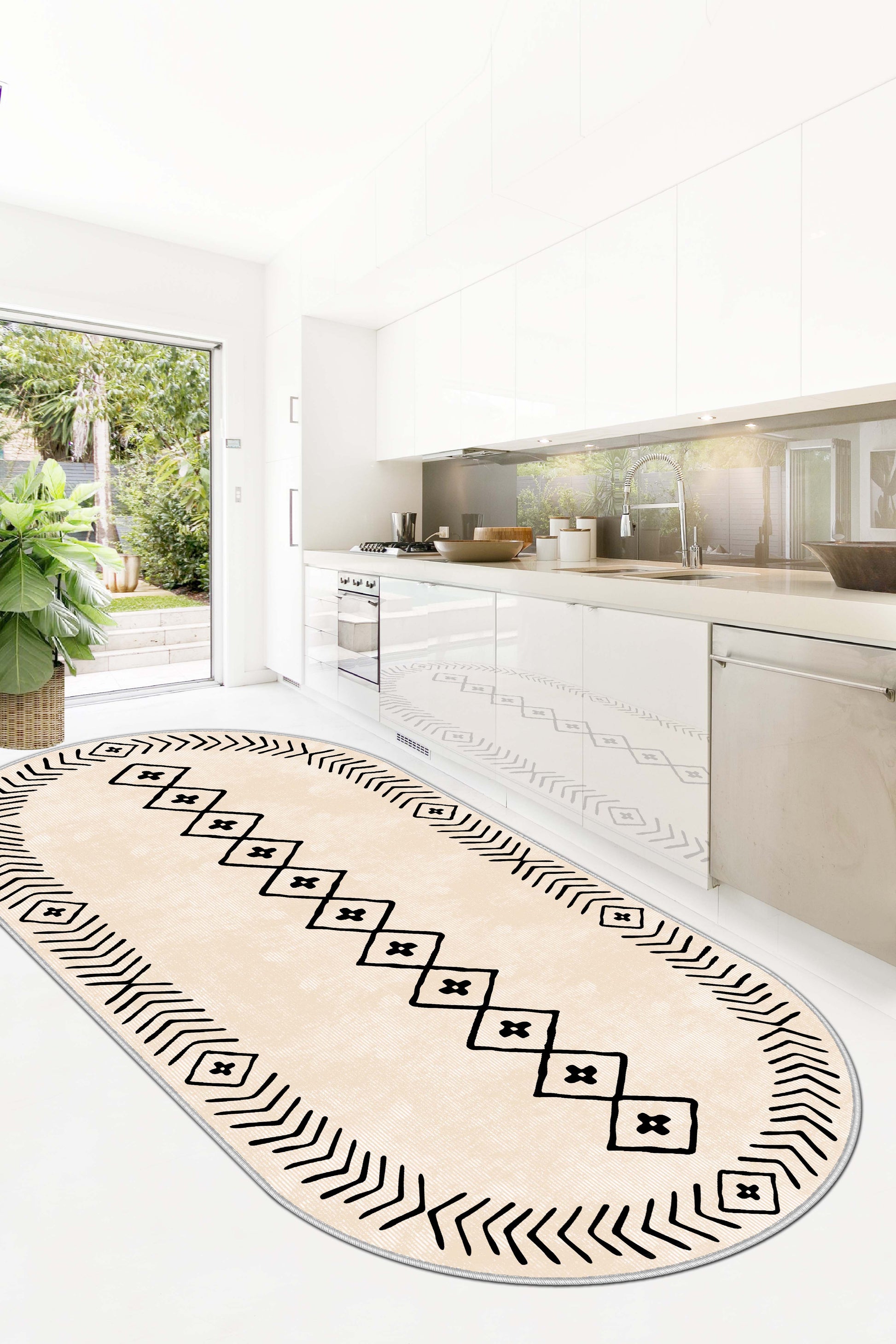 West Home Dijital Baskılı Yıkanabilir Kaymaz Taban Salon, Mutfak ve Yolluk Halısı-586 Beige