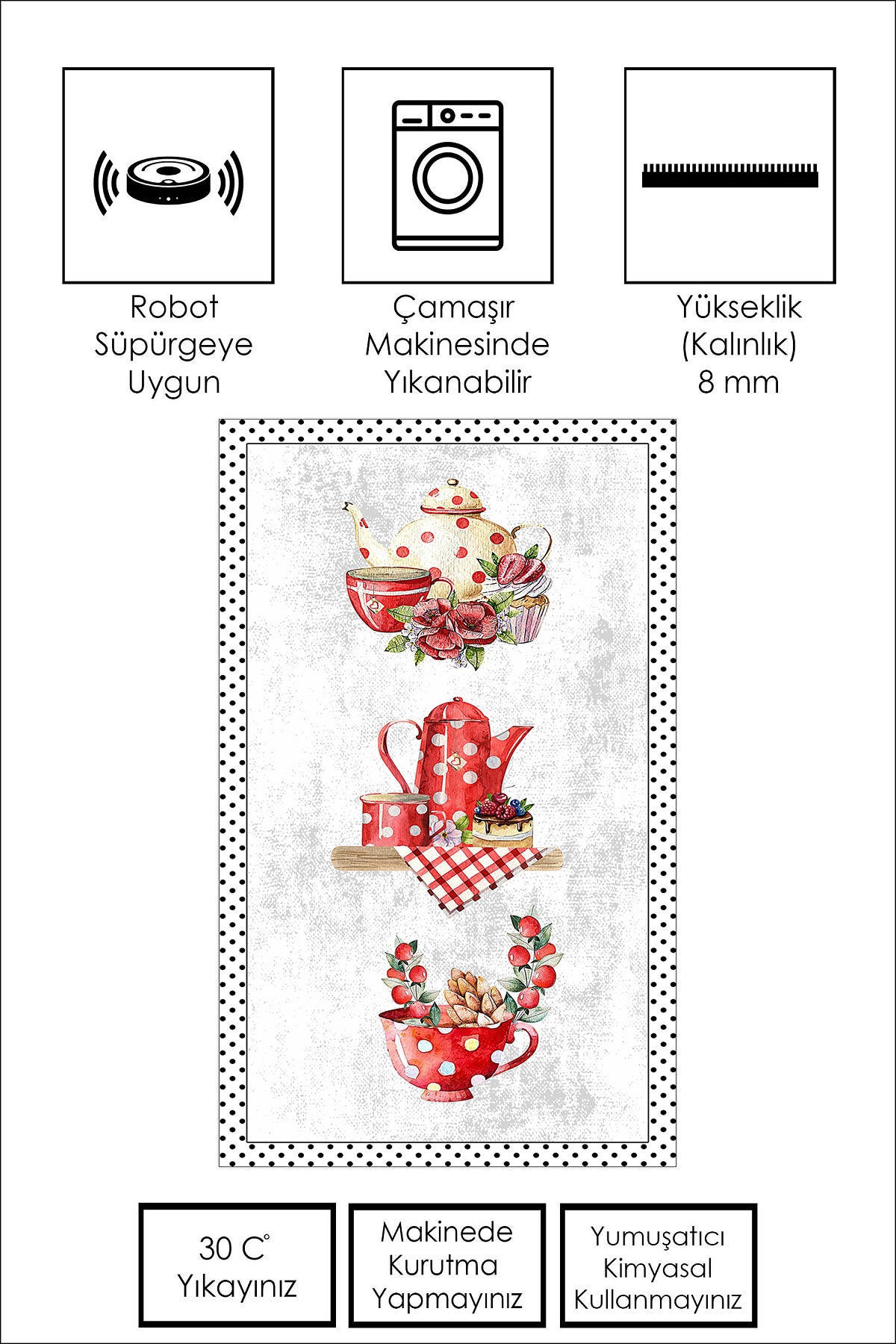 West Home Dijital Baskılı Yıkanabilir Kaymaz Taban Mutfak Halısı-391 White