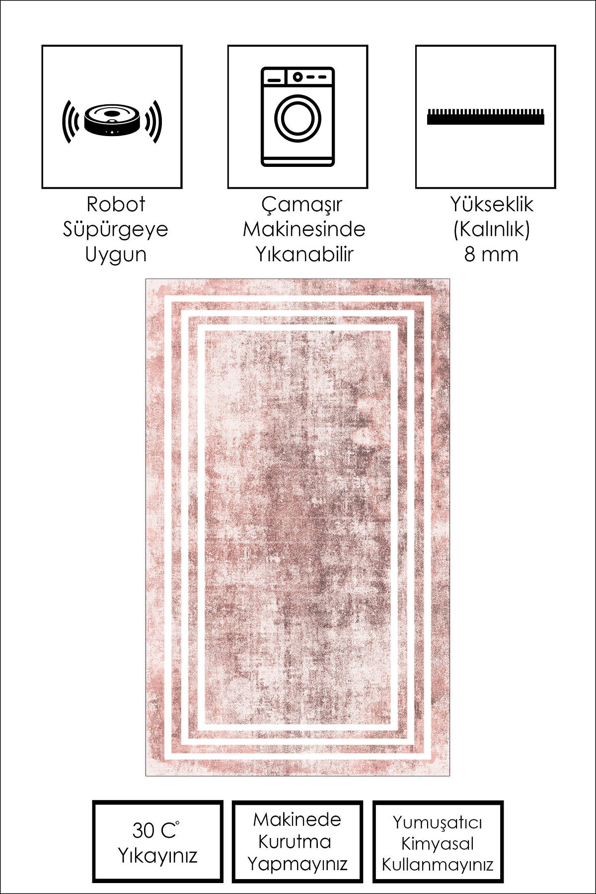 West Home Dijital Baskılı Yıkanabilir Kaymaz Taban Salon, Mutfak ve Yolluk Halısı-413 Rose