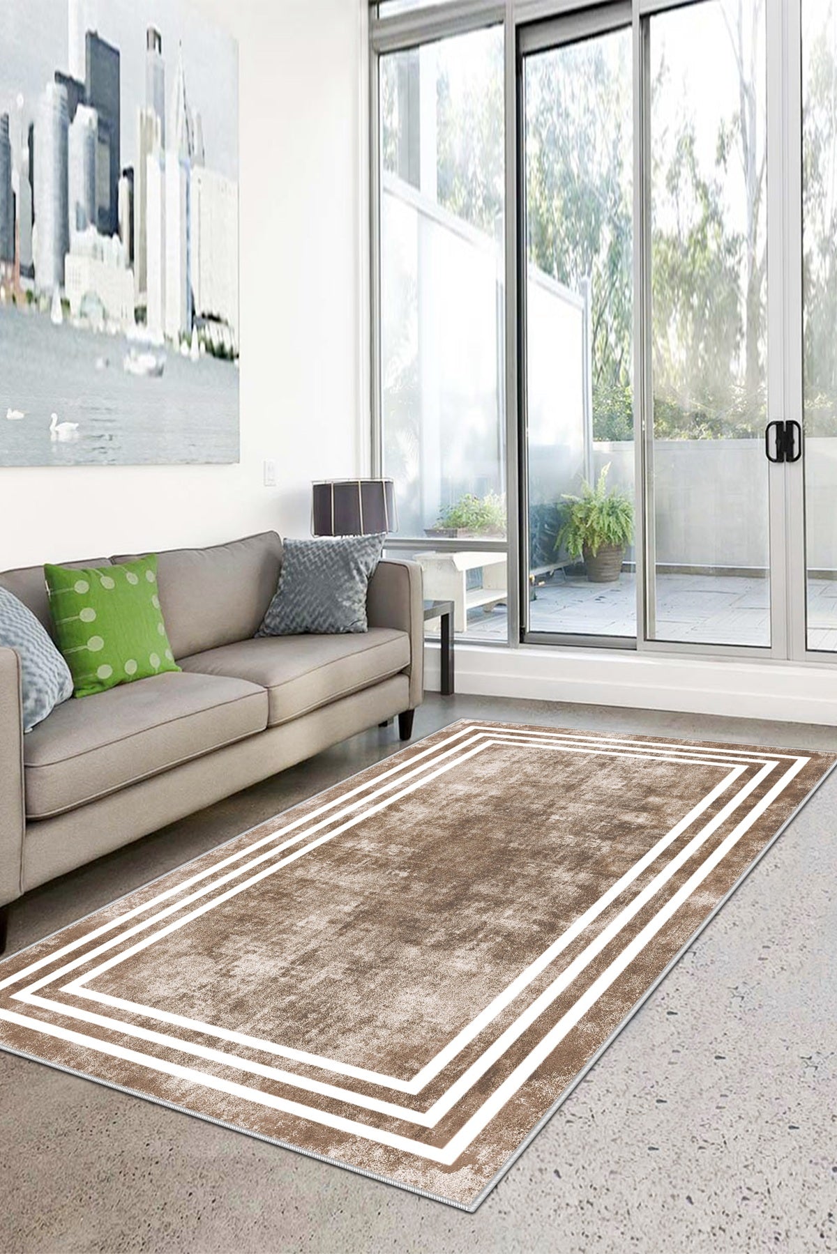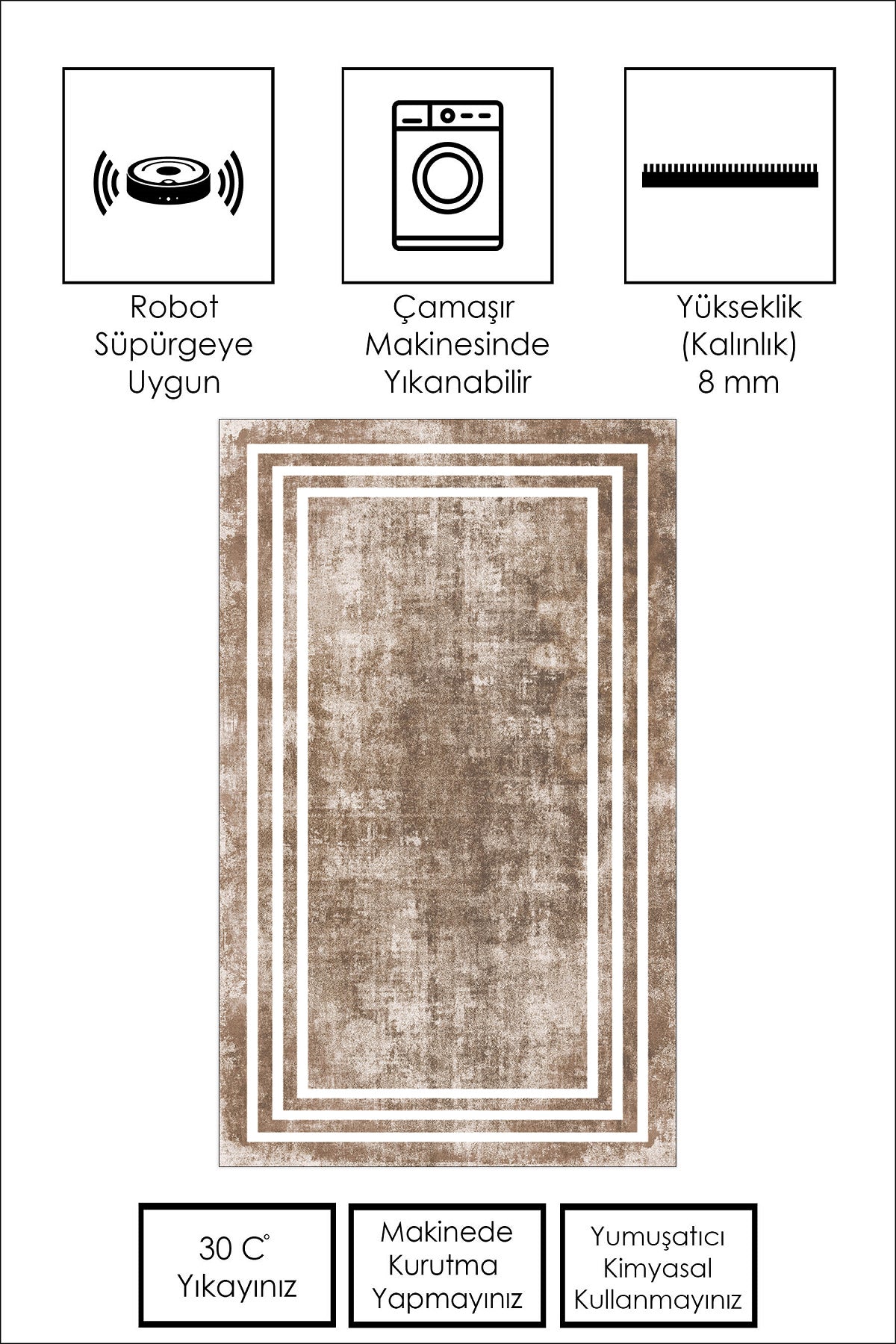 West Home Dijital Baskılı Yıkanabilir Kaymaz Taban Salon, Mutfak ve Yolluk Halısı-455 Beige