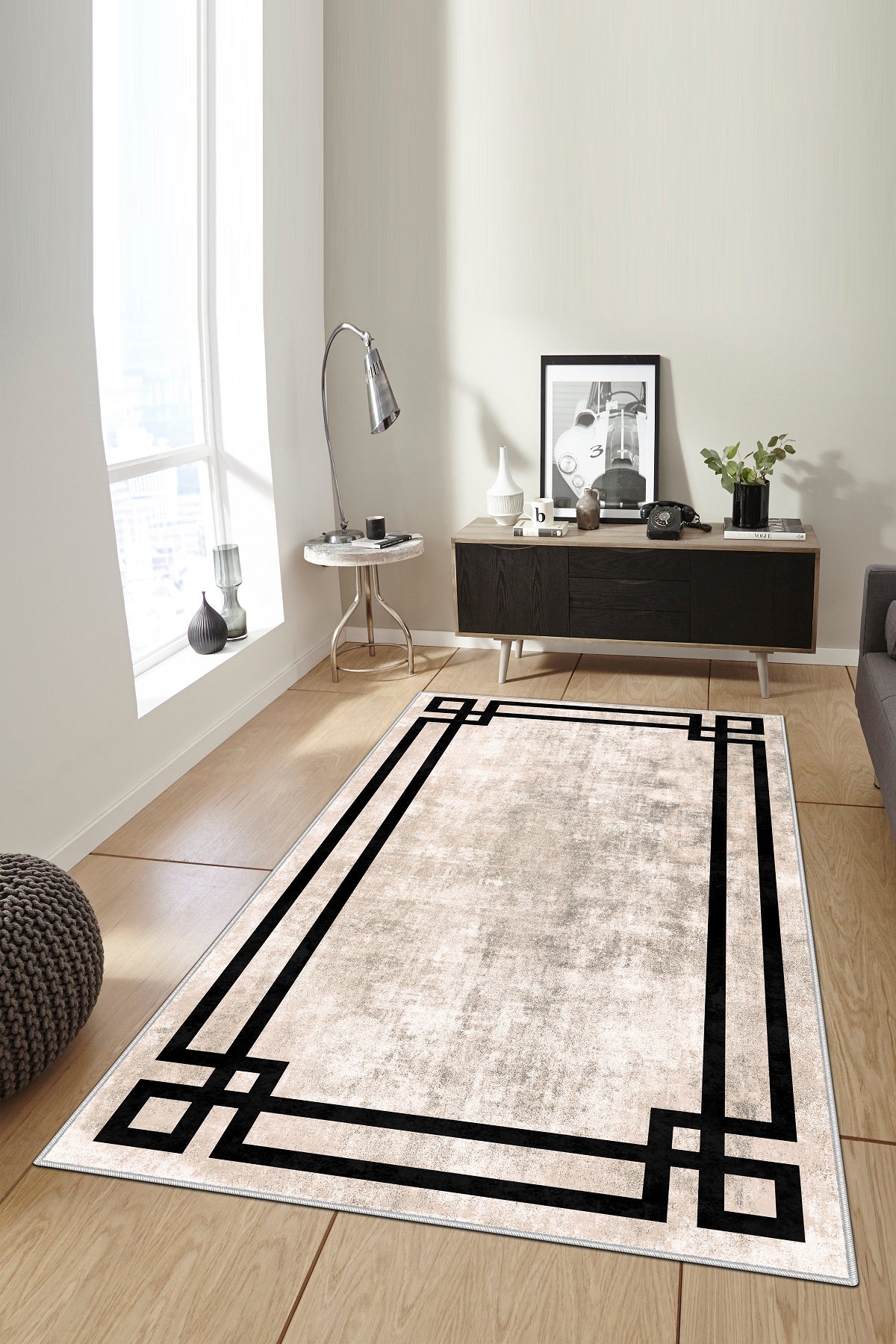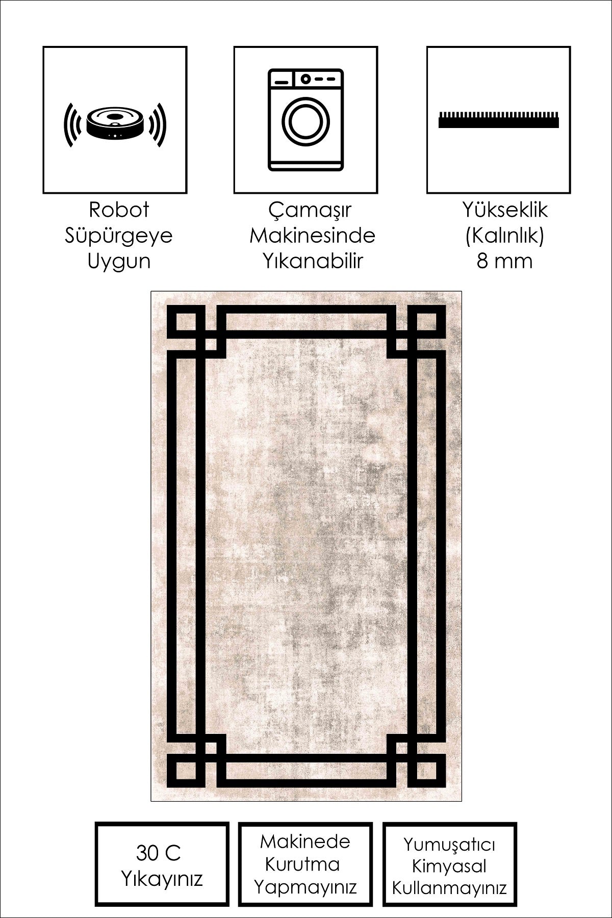 West Home Dijital Baskılı Yıkanabilir Kaymaz Taban Salon, Mutfak ve Yolluk Halısı-455 Beige