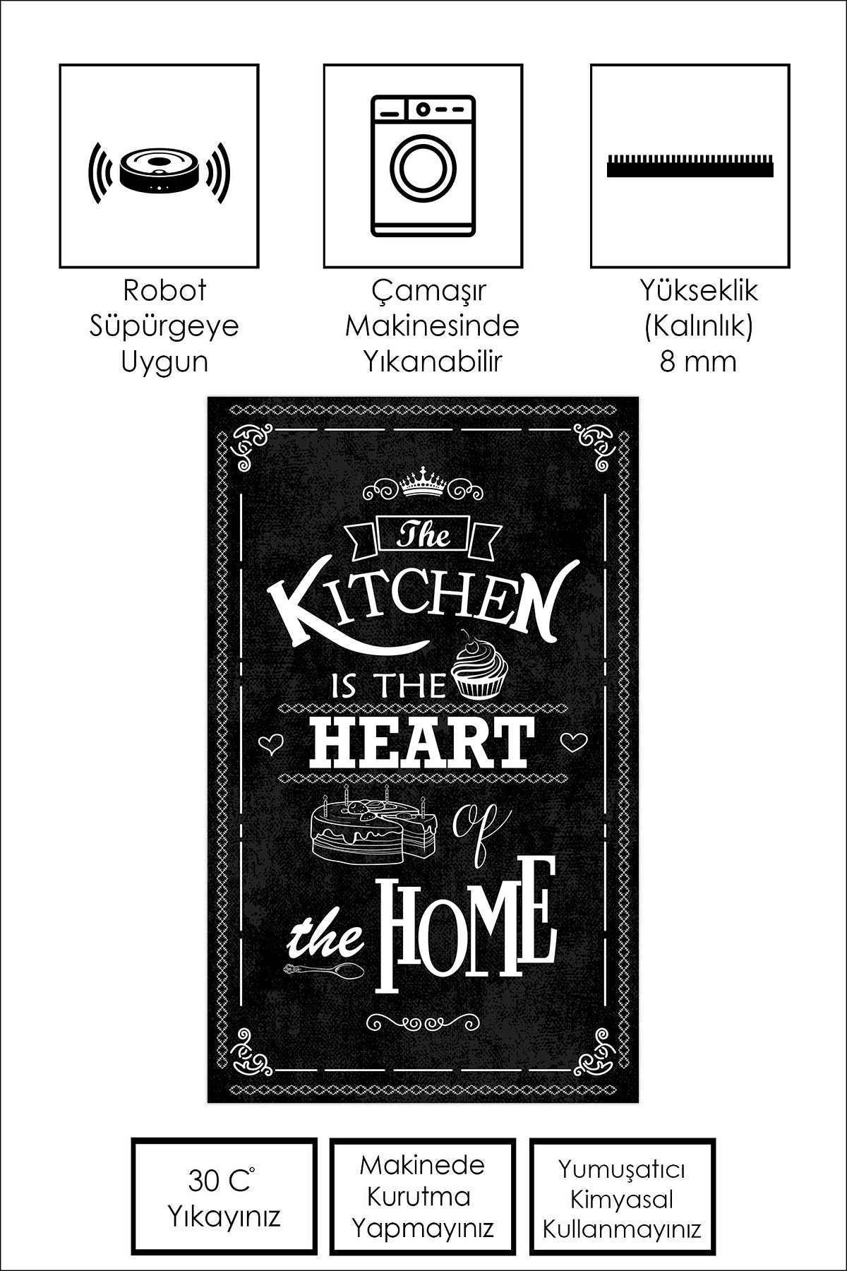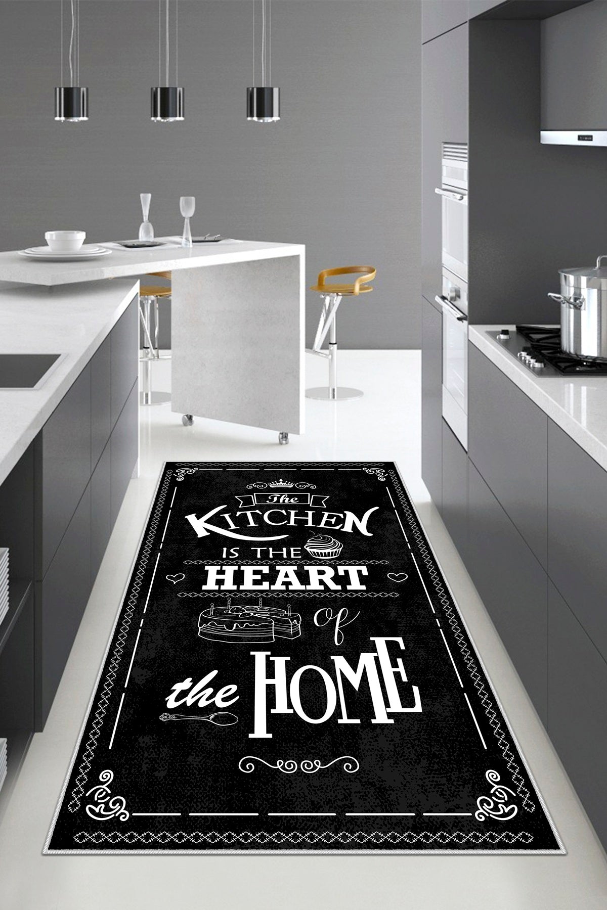 West Home Dijital Baskılı Yıkanabilir Kaymaz Taban Mutfak Halısı-424 Black