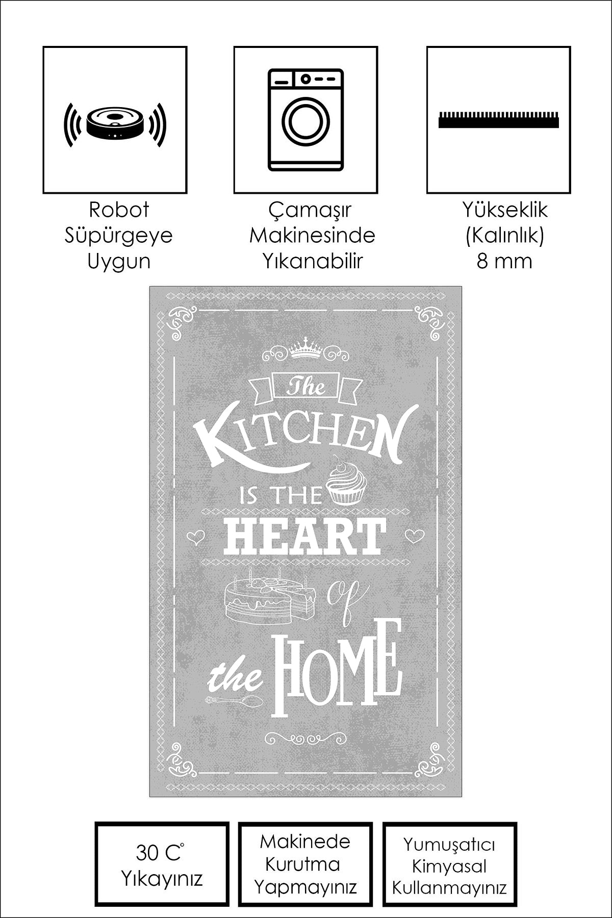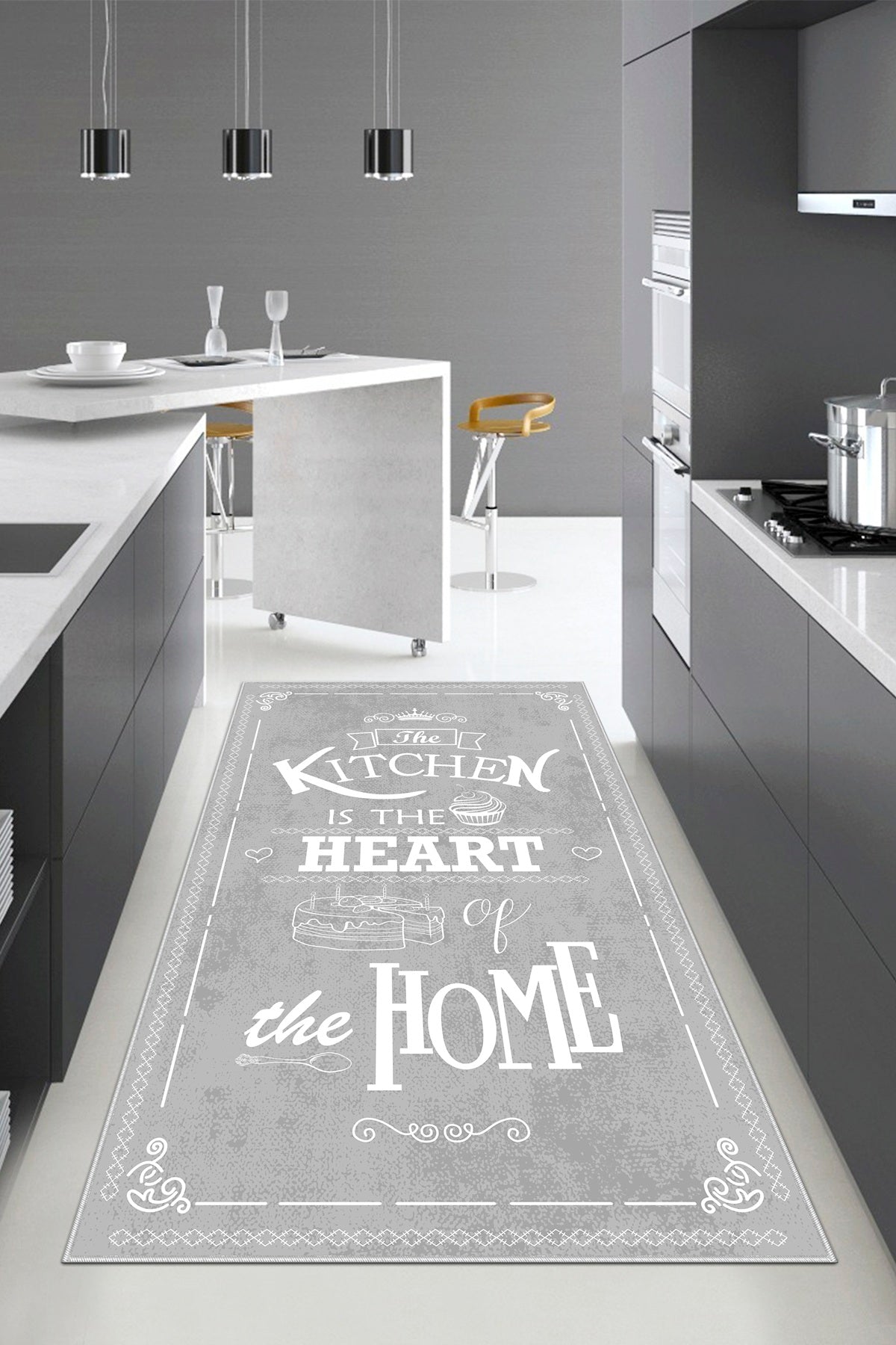 West Home Dijital Baskılı Yıkanabilir Kaymaz Taban Mutfak Halısı-424 Grey