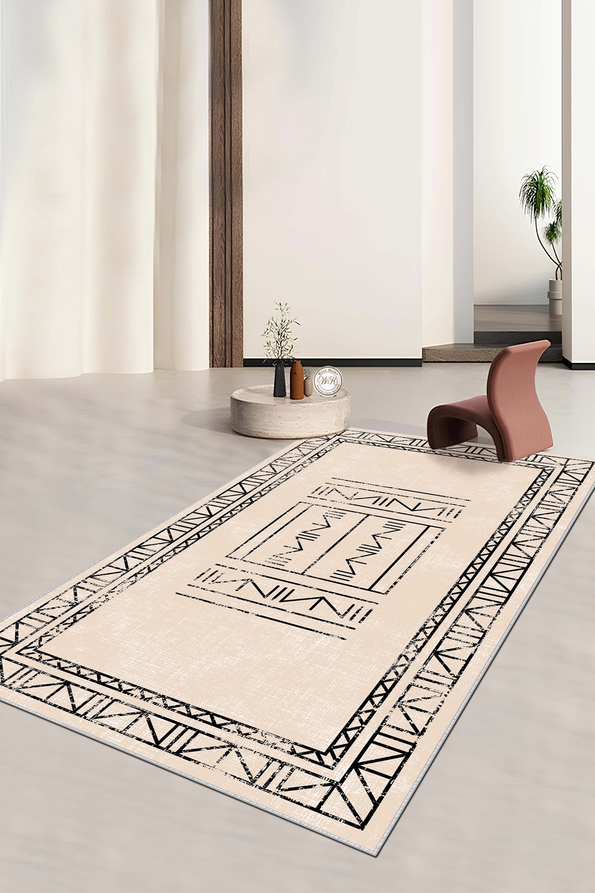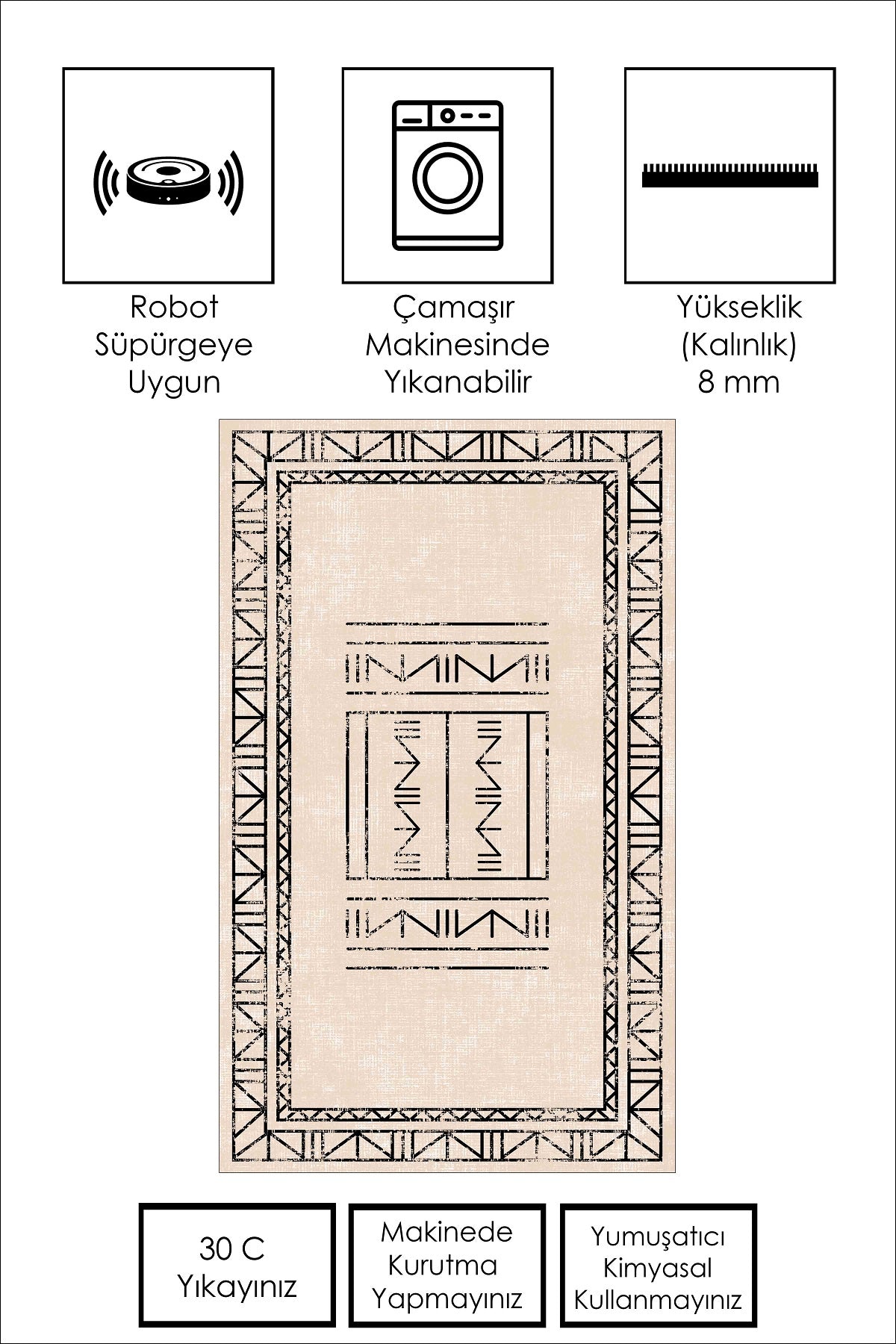 West Home Dijital Baskılı Yıkanabilir Kaymaz Taban Salon, Mutfak ve Yolluk Halısı-455 Beige