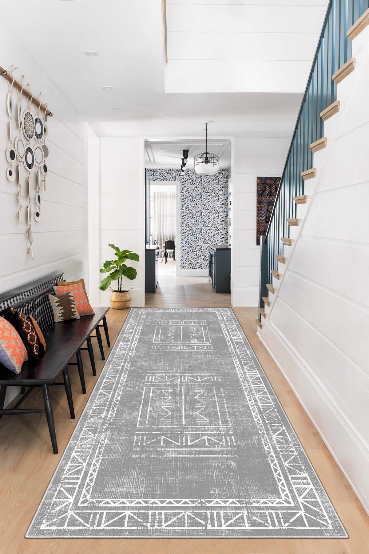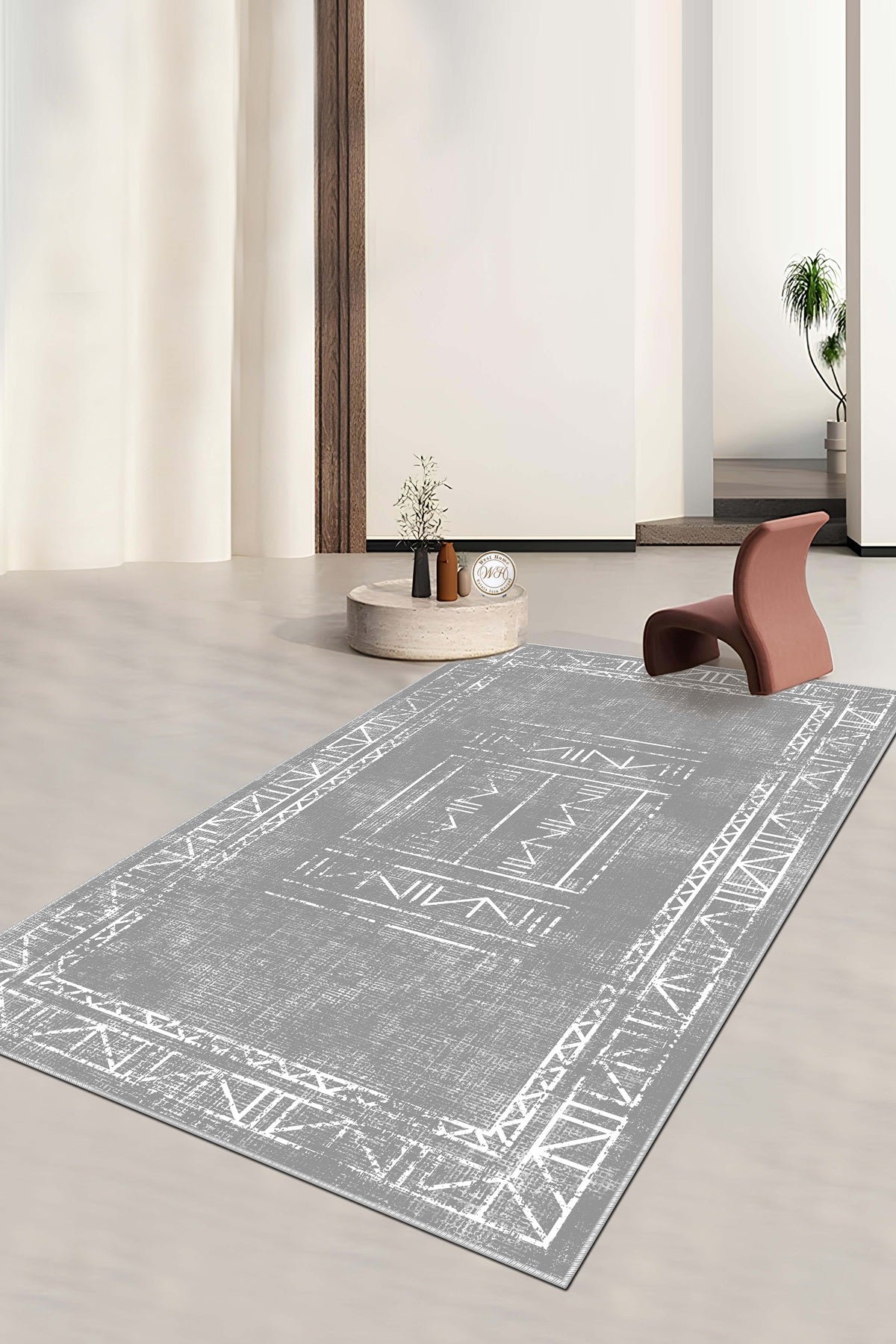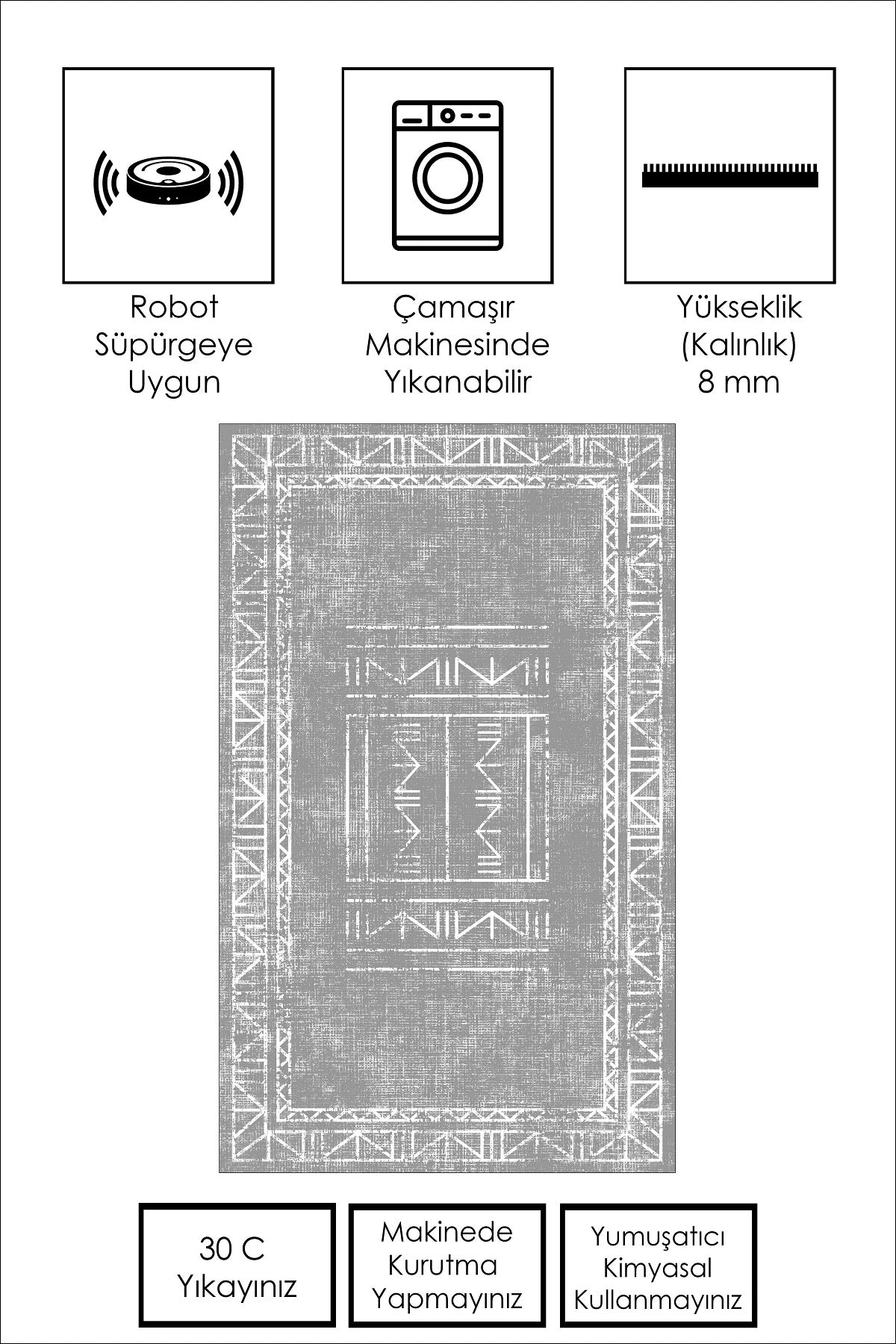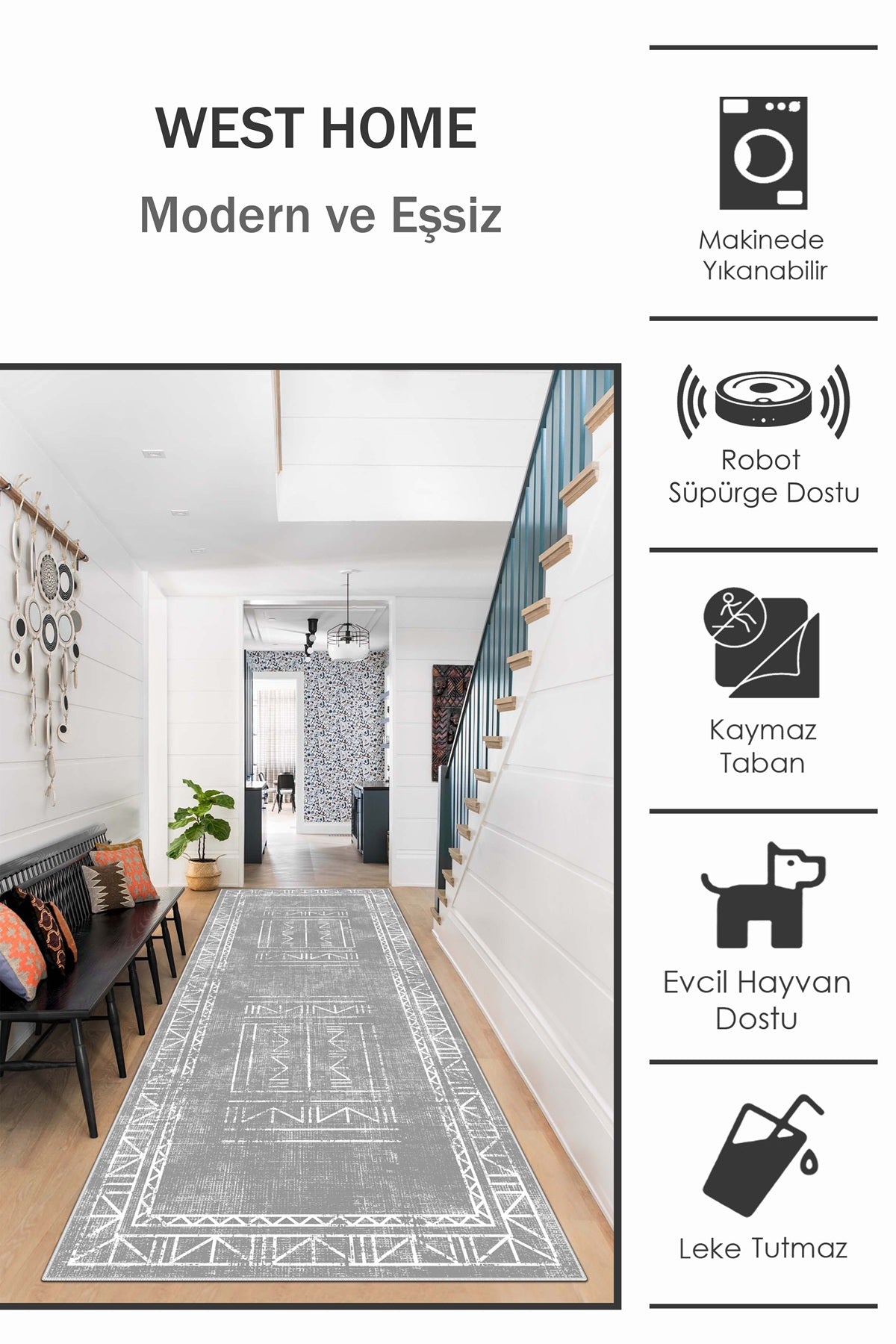 West Home Dijital Baskılı Yıkanabilir Kaymaz Taban Salon, Mutfak ve Yolluk Halısı-445 Grey