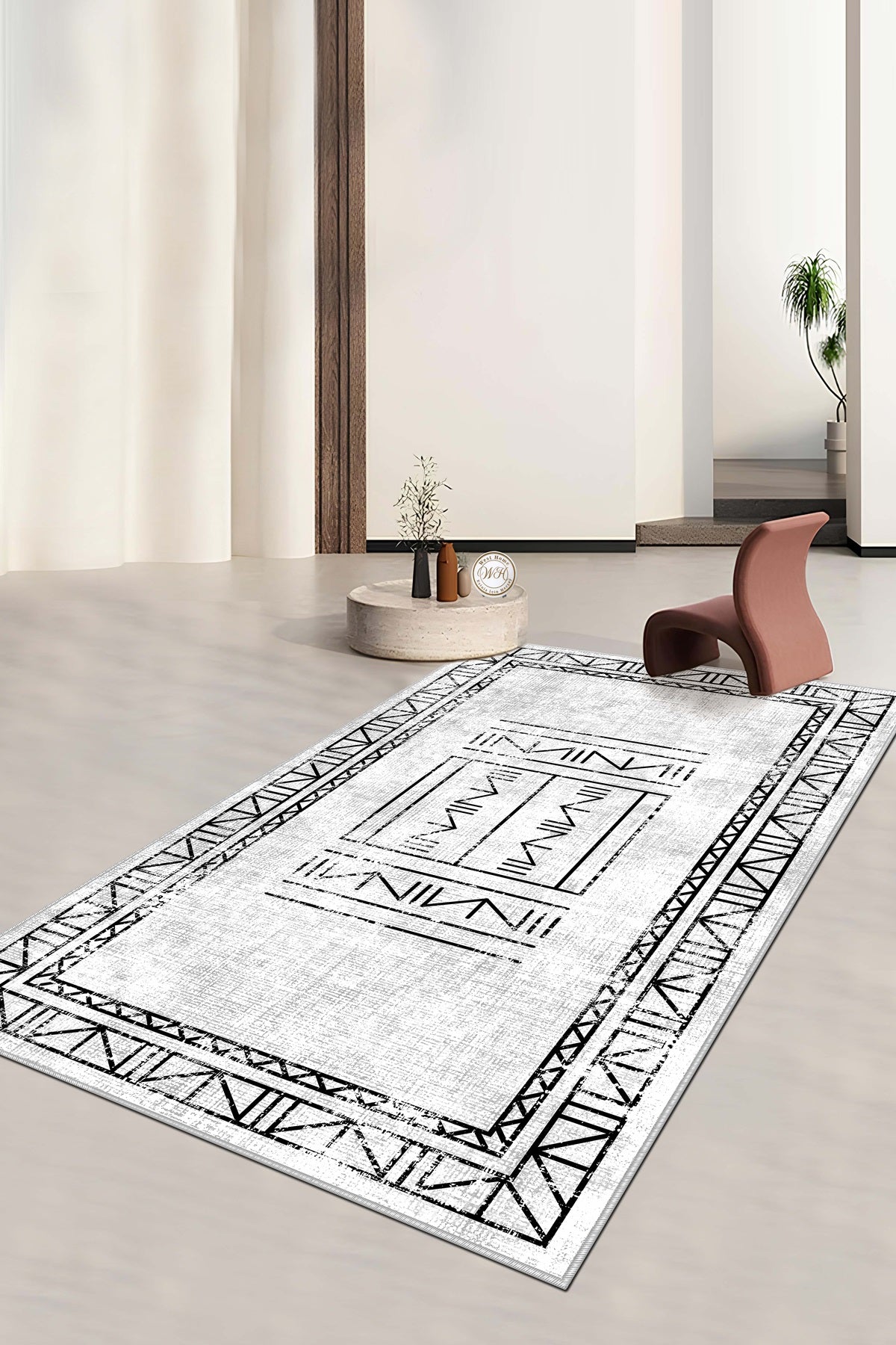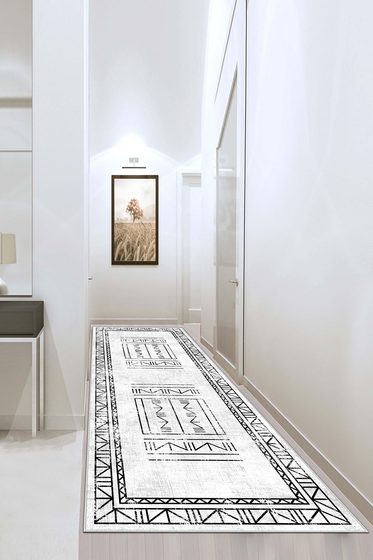 West Home Dijital Baskılı Yıkanabilir Kaymaz Taban Salon, Mutfak ve Yolluk Halısı-435 White