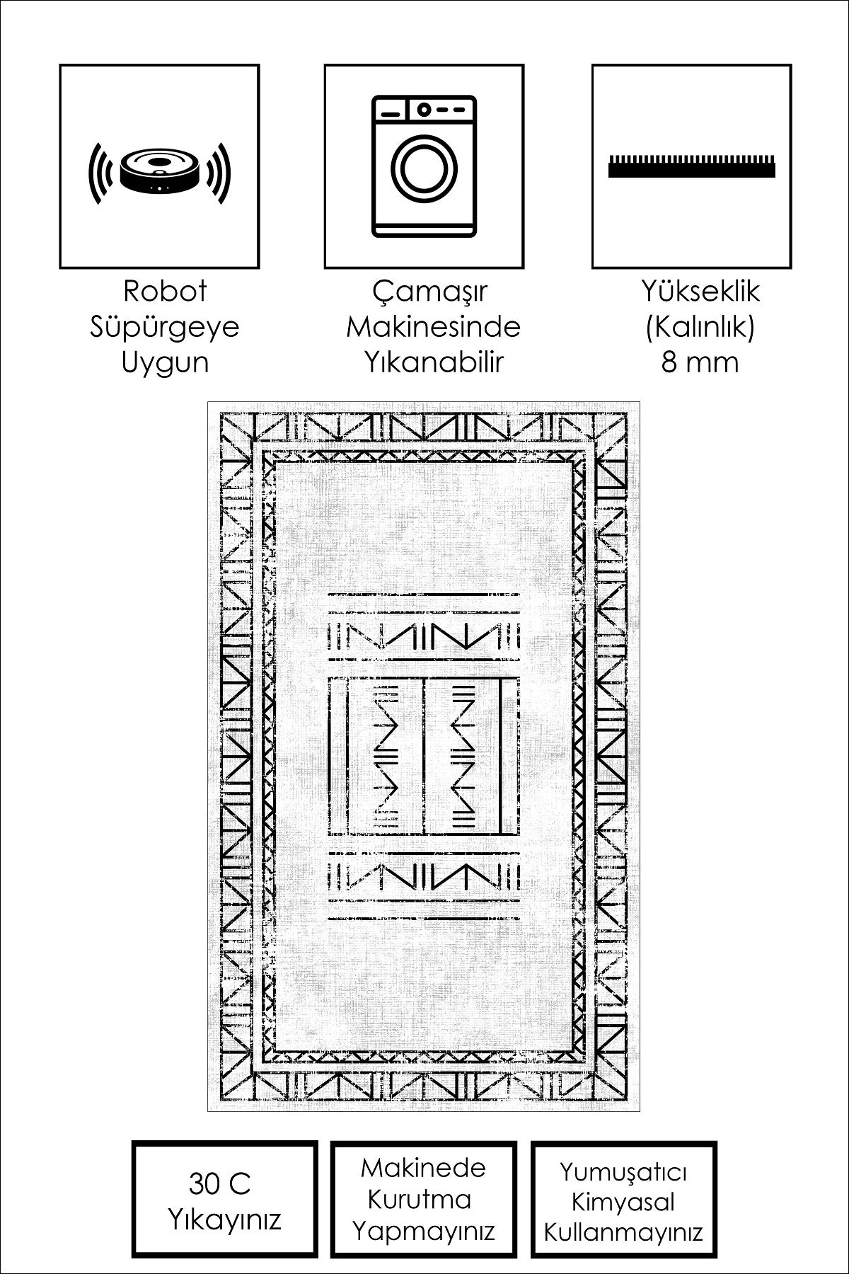 West Home Dijital Baskılı Yıkanabilir Kaymaz Taban Salon, Mutfak ve Yolluk Halısı-445 Grey