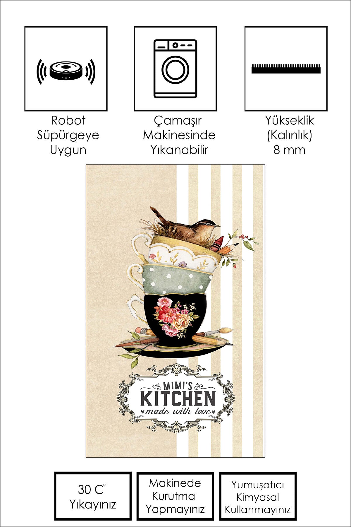 West Home Dijital Baskılı Yıkanabilir Kaymaz Taban Mutfak Halısı-436 Beige