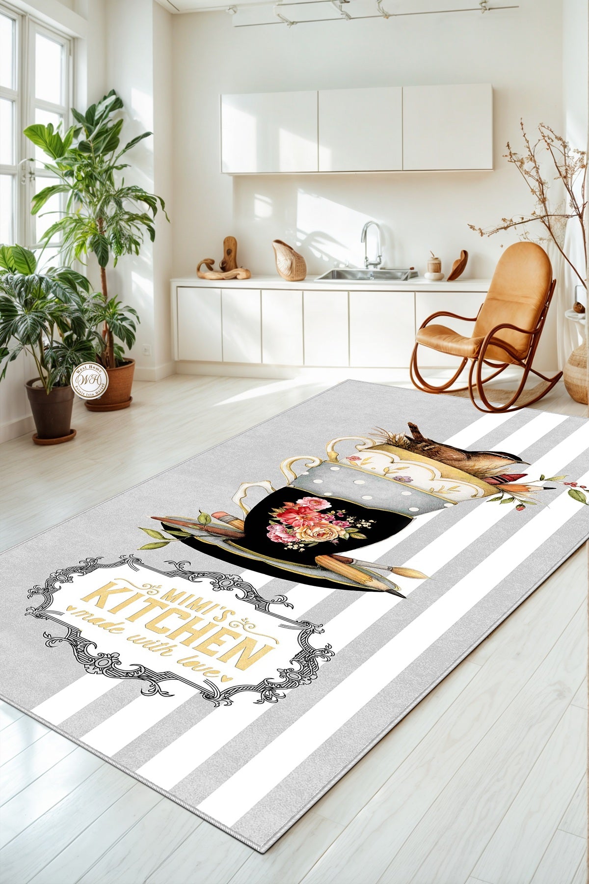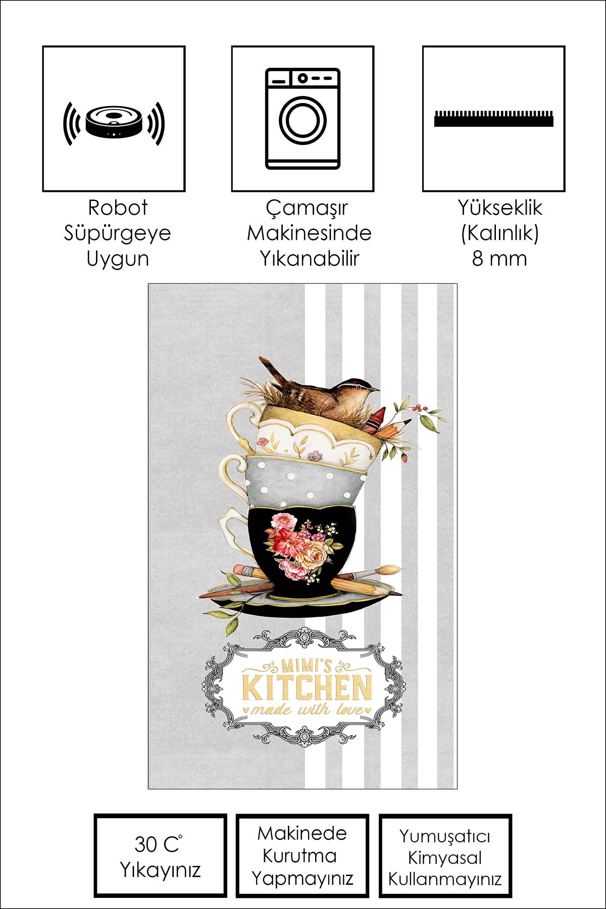 West Home Dijital Baskılı Yıkanabilir Kaymaz Taban Mutfak Halısı-436 Grey
