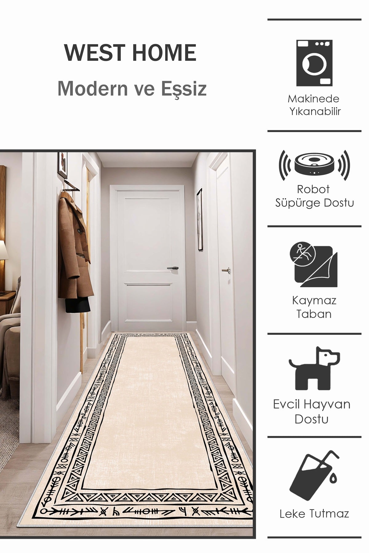 West Home Dijital Baskılı Yıkanabilir Kaymaz Taban Salon, Mutfak ve Yolluk Halısı-440 Beige