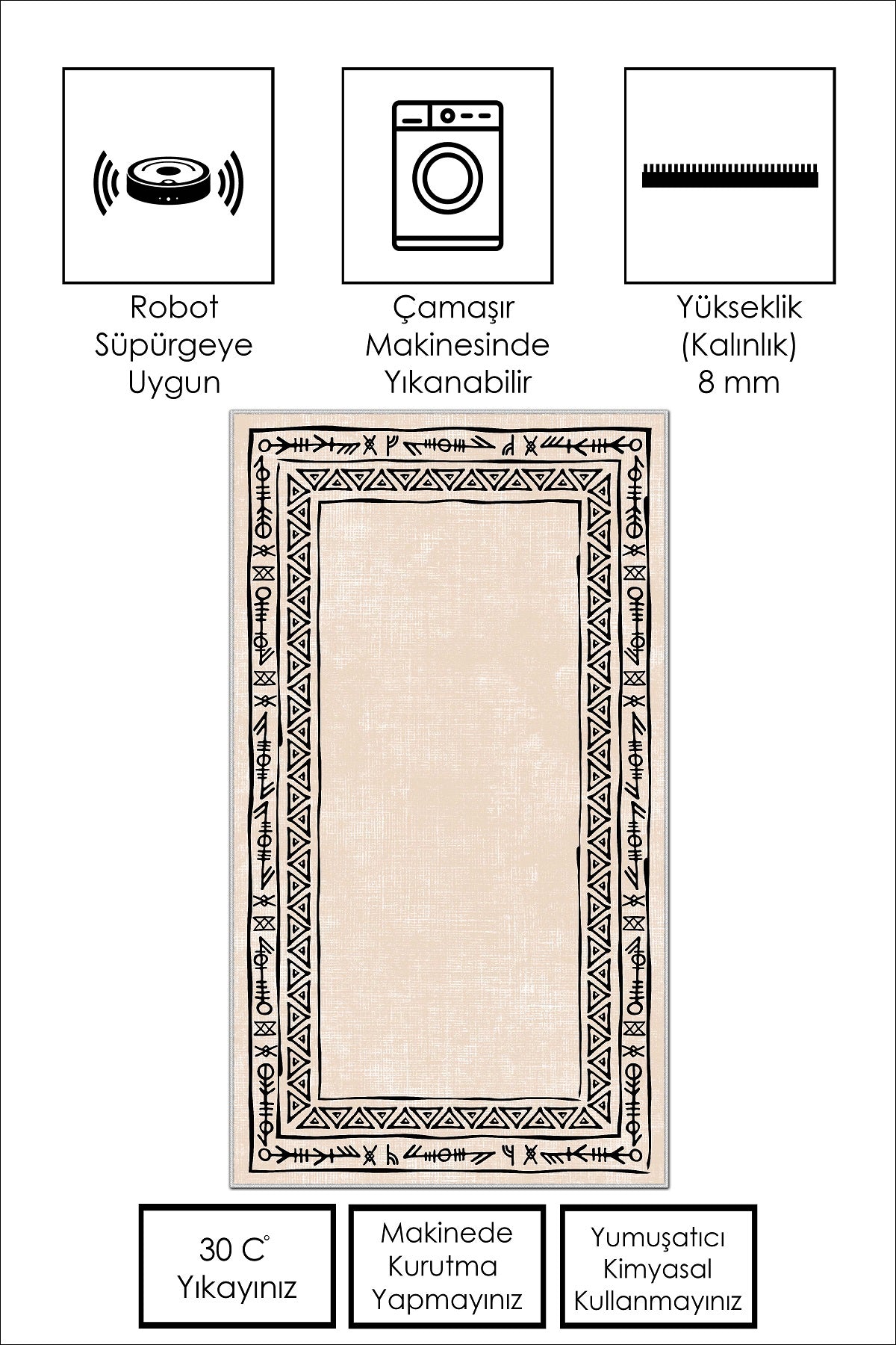 West Home Dijital Baskılı Yıkanabilir Kaymaz Taban Salon, Mutfak ve Yolluk Halısı-455 Beige