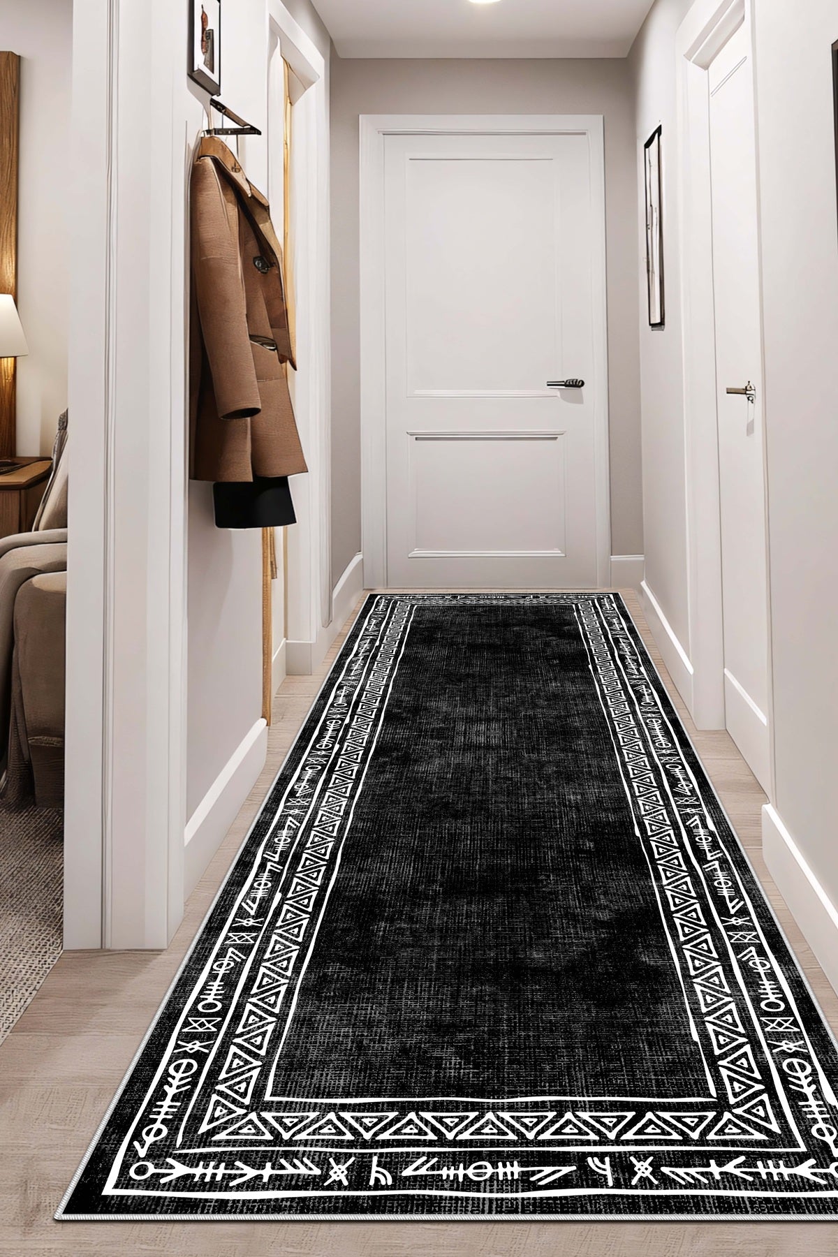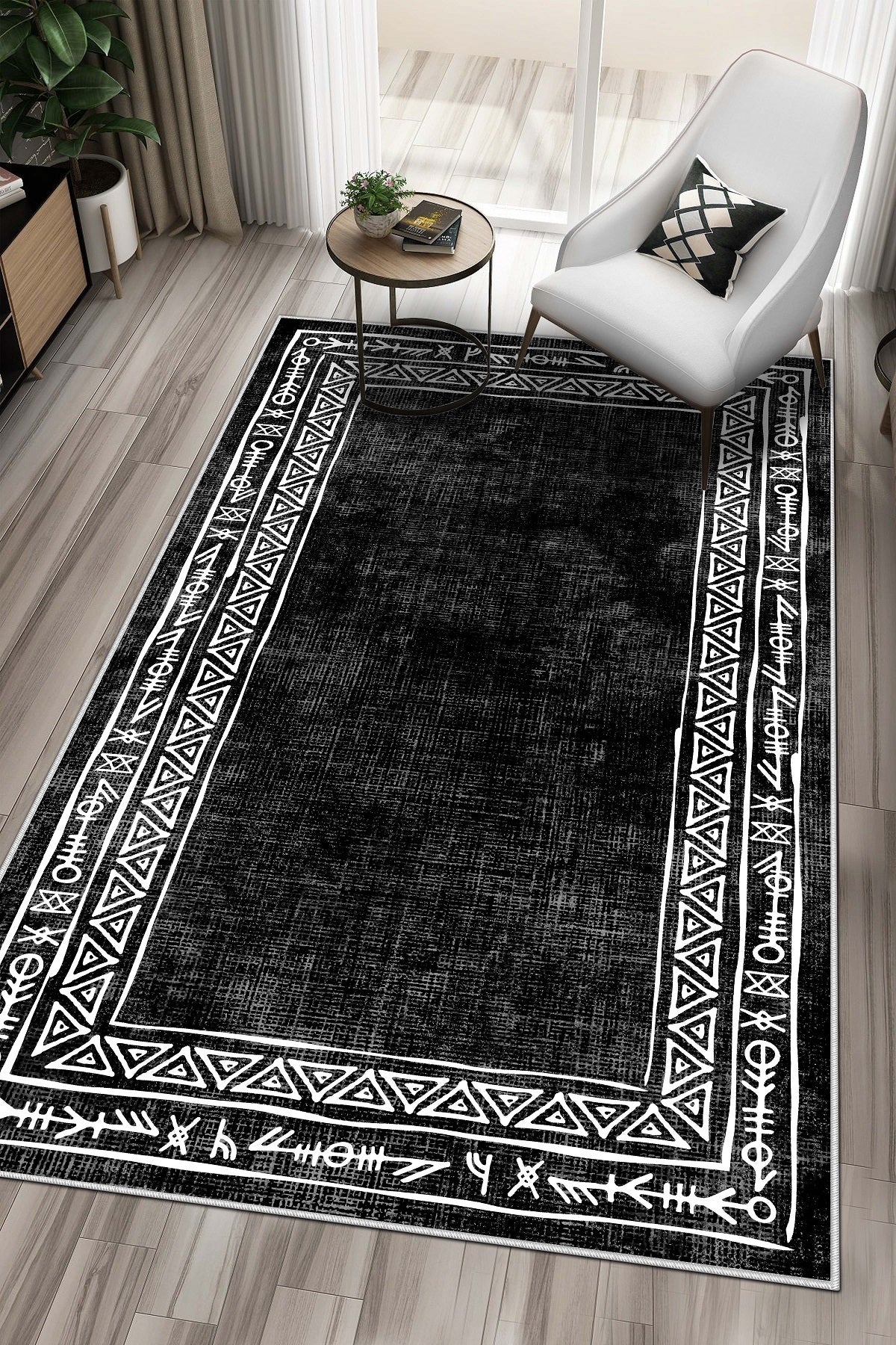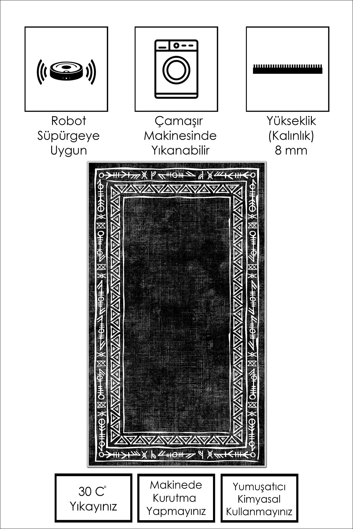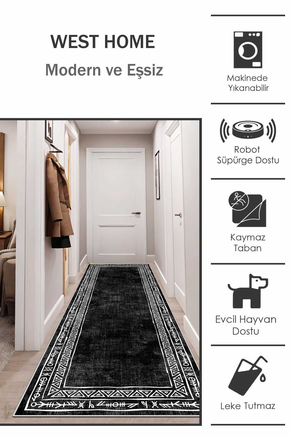 West Home Dijital Baskılı Yıkanabilir Kaymaz Taban Salon, Mutfak ve Yolluk Halısı-440 Black