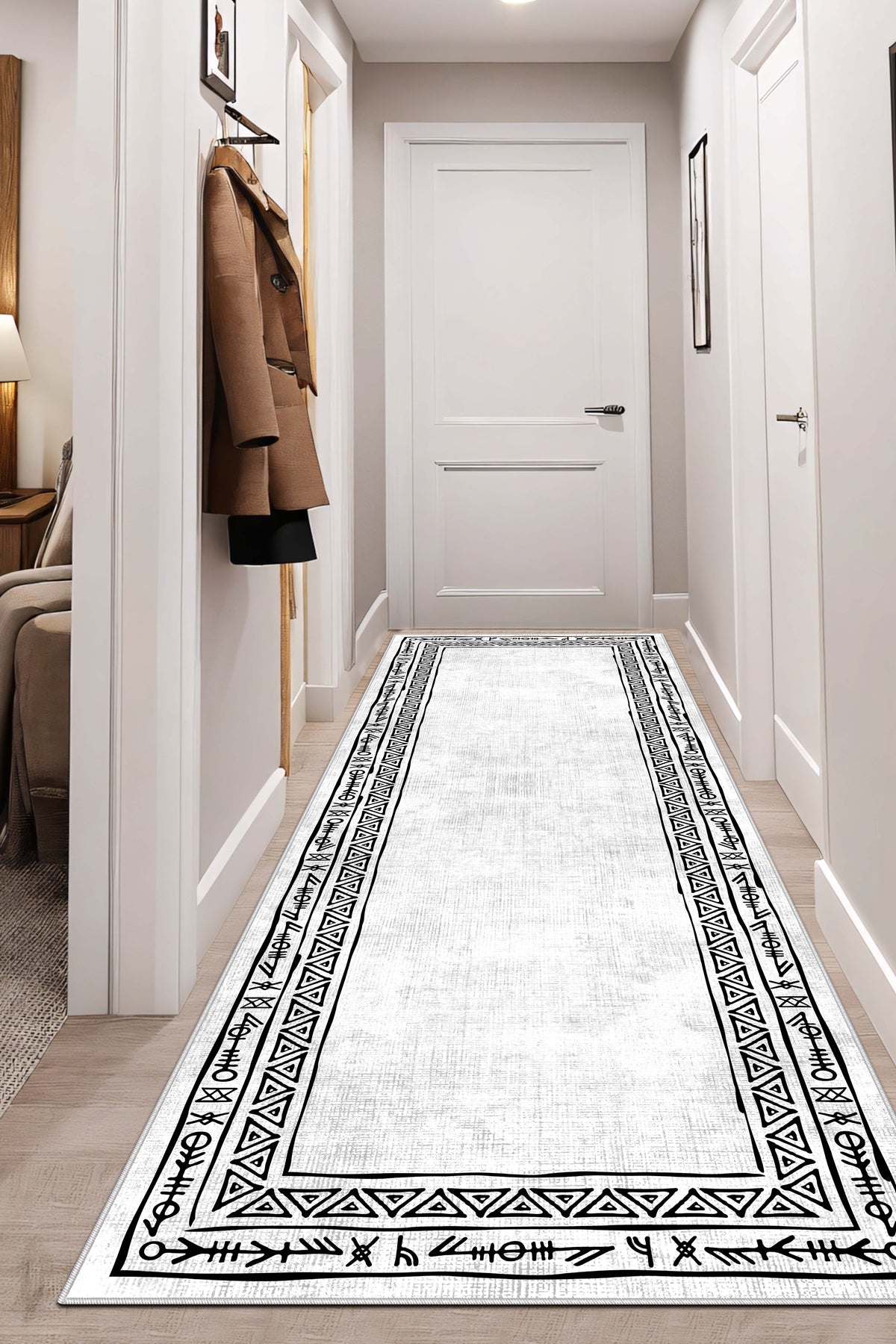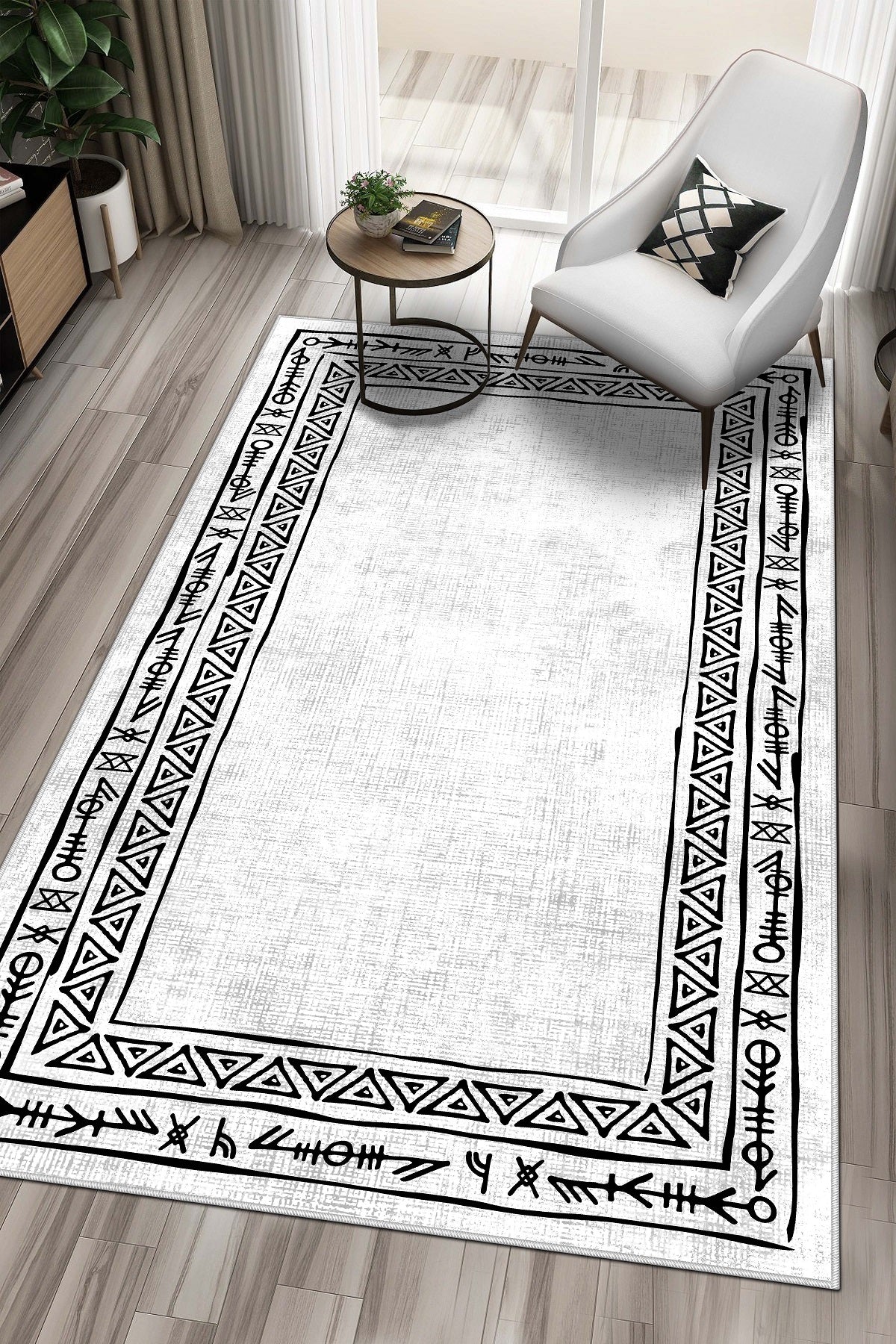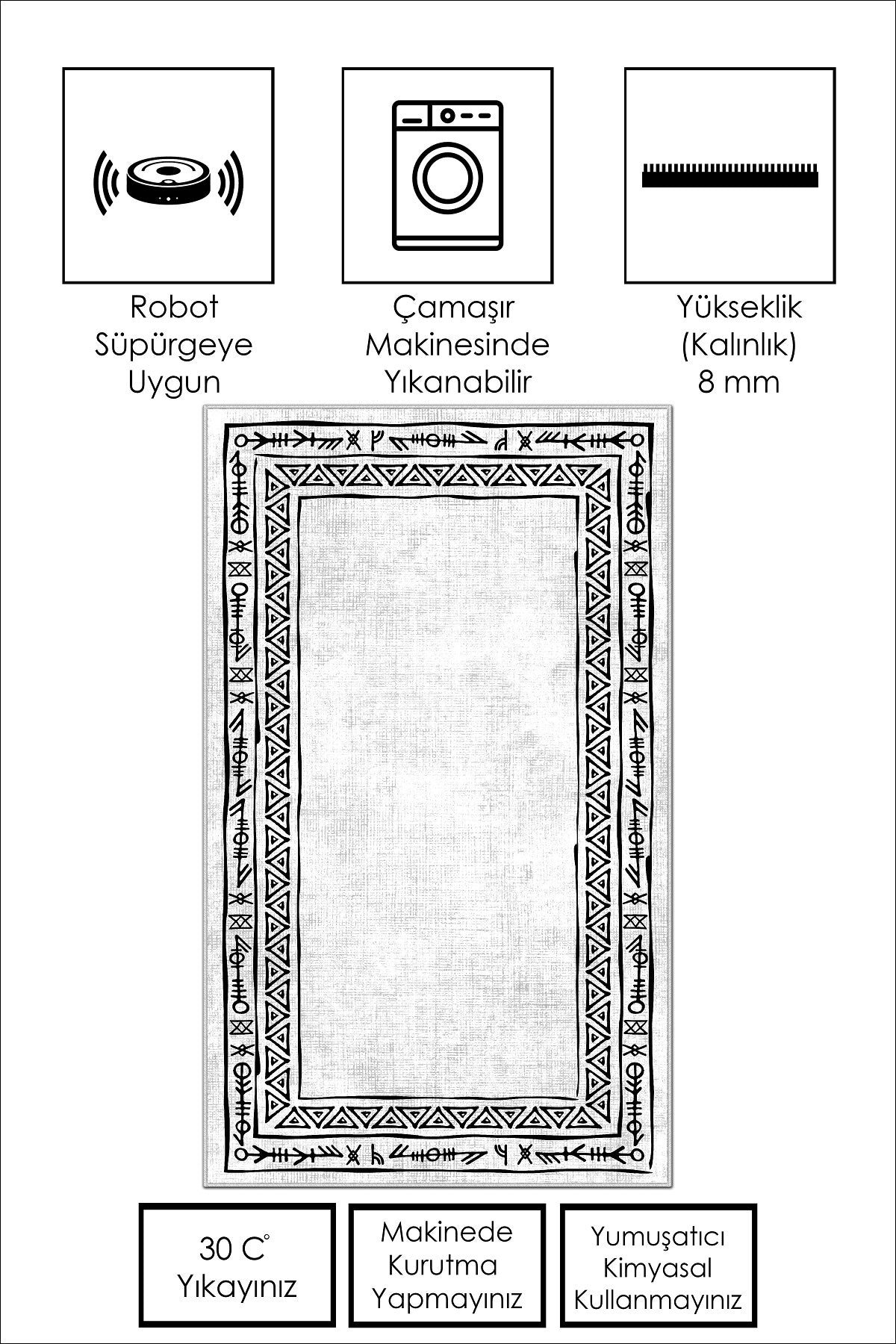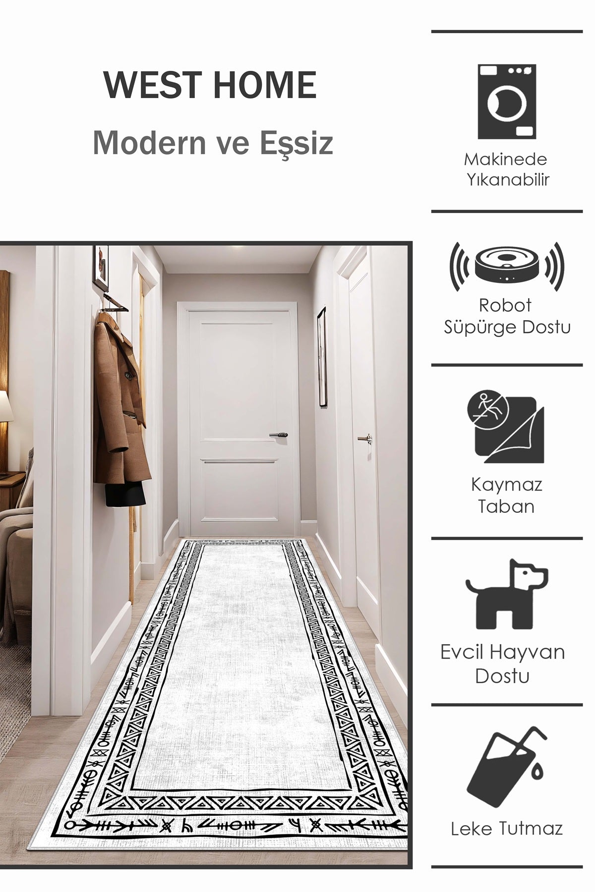 West Home Dijital Baskılı Yıkanabilir Kaymaz Taban Salon, Mutfak ve Yolluk Halısı-440 White