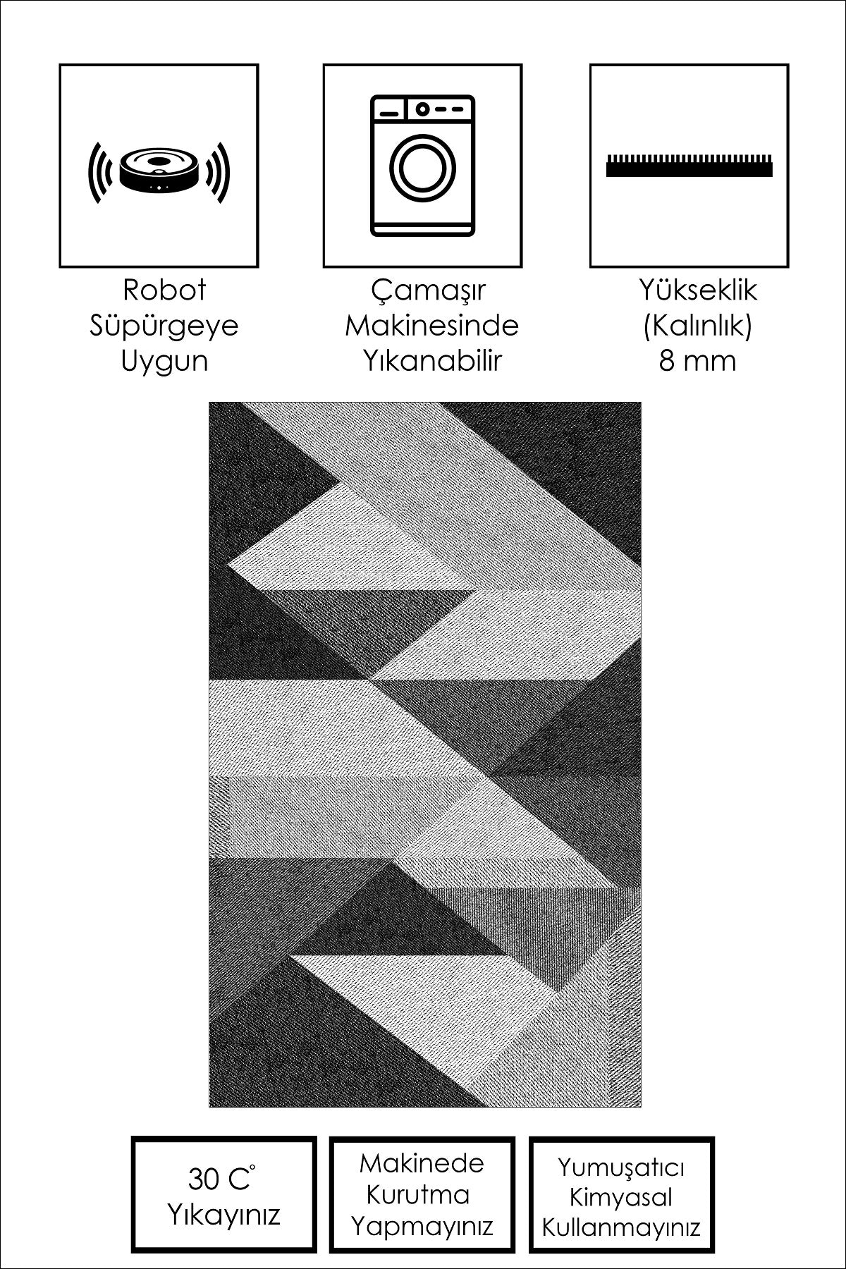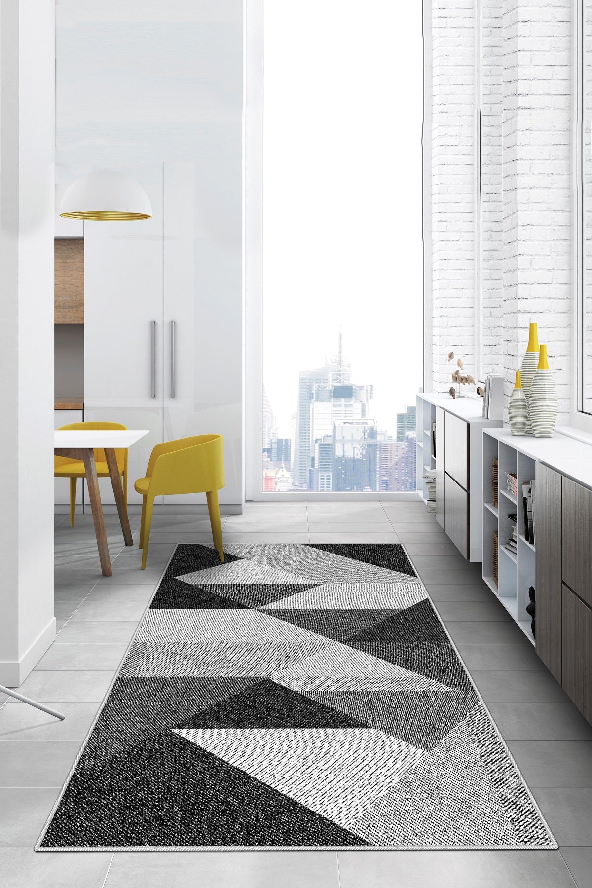 West Home Dijital Baskılı Yıkanabilir Kaymaz Taban Salon, Mutfak ve Yolluk Halısı-445 Grey