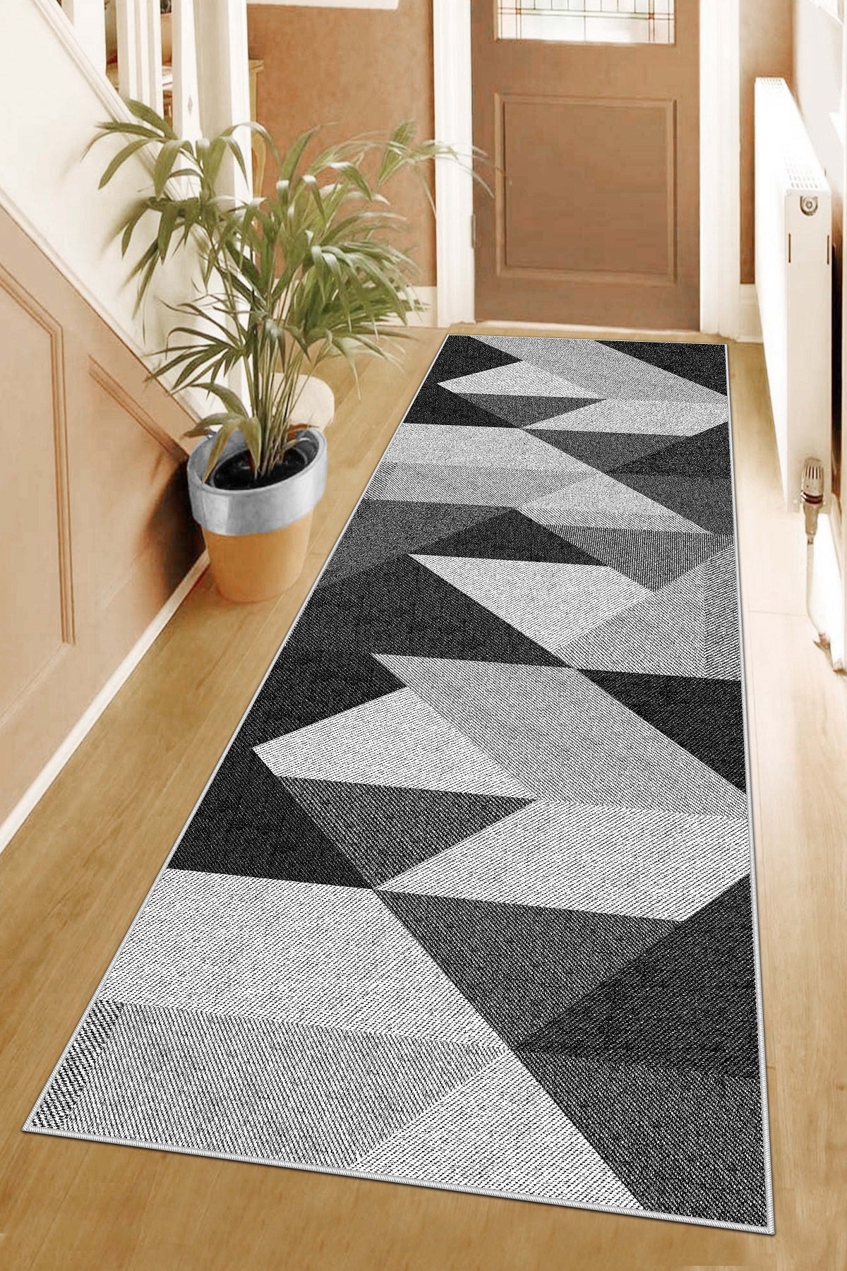 West Home Dijital Baskılı Yıkanabilir Kaymaz Taban Salon, Mutfak ve Yolluk Halısı-443 Black