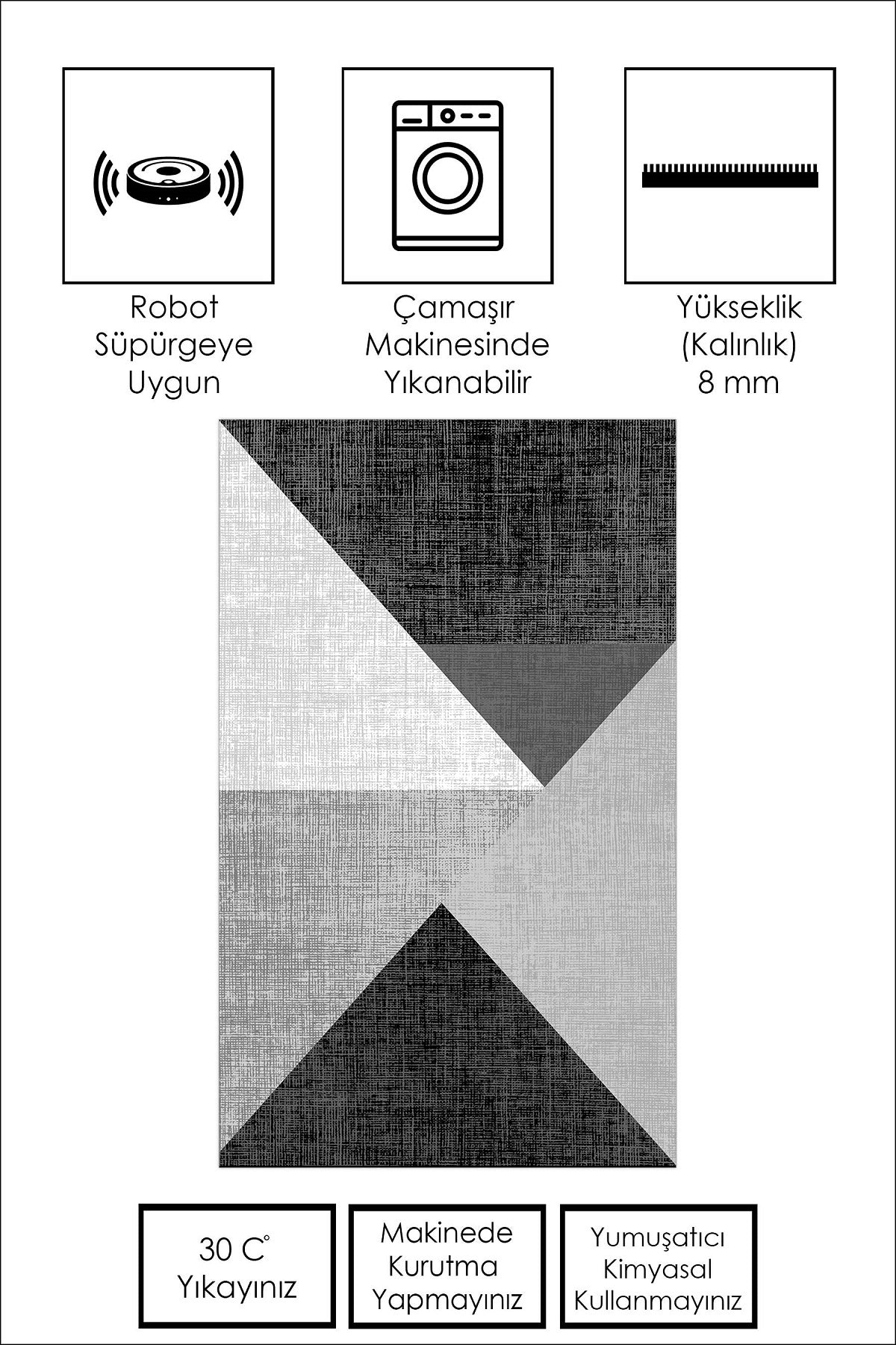 West Home Dijital Baskılı Yıkanabilir Kaymaz Taban Salon, Mutfak ve Yolluk Halısı-445 Grey
