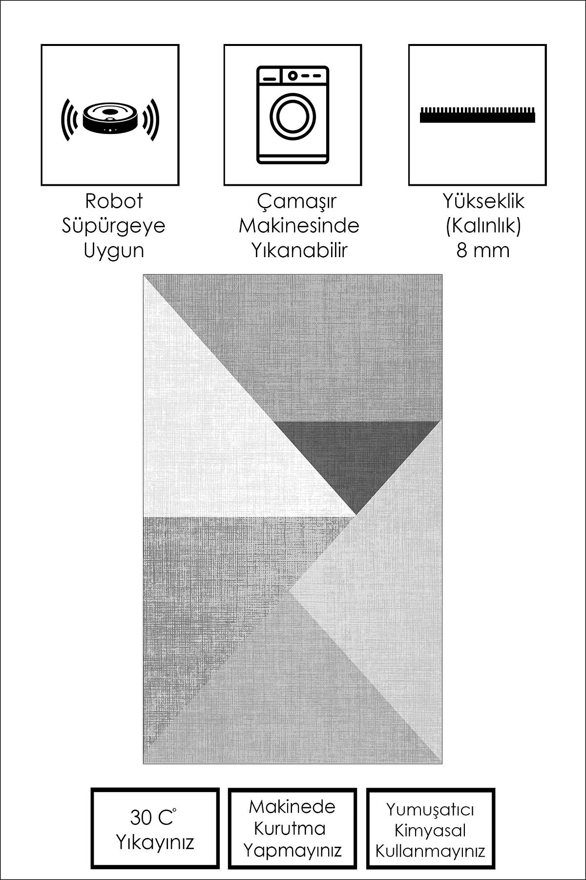 West Home Dijital Baskılı Yıkanabilir Kaymaz Taban Salon, Mutfak ve Yolluk Halısı-447 Grey
