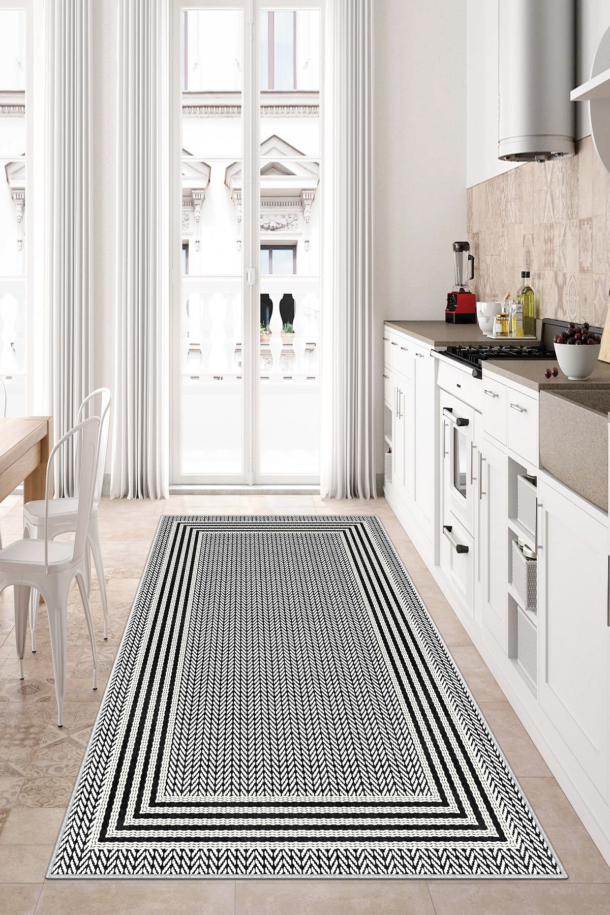 West Home Dijital Baskılı Yıkanabilir Kaymaz Taban Salon, Mutfak ve Yolluk Halısı-479 White