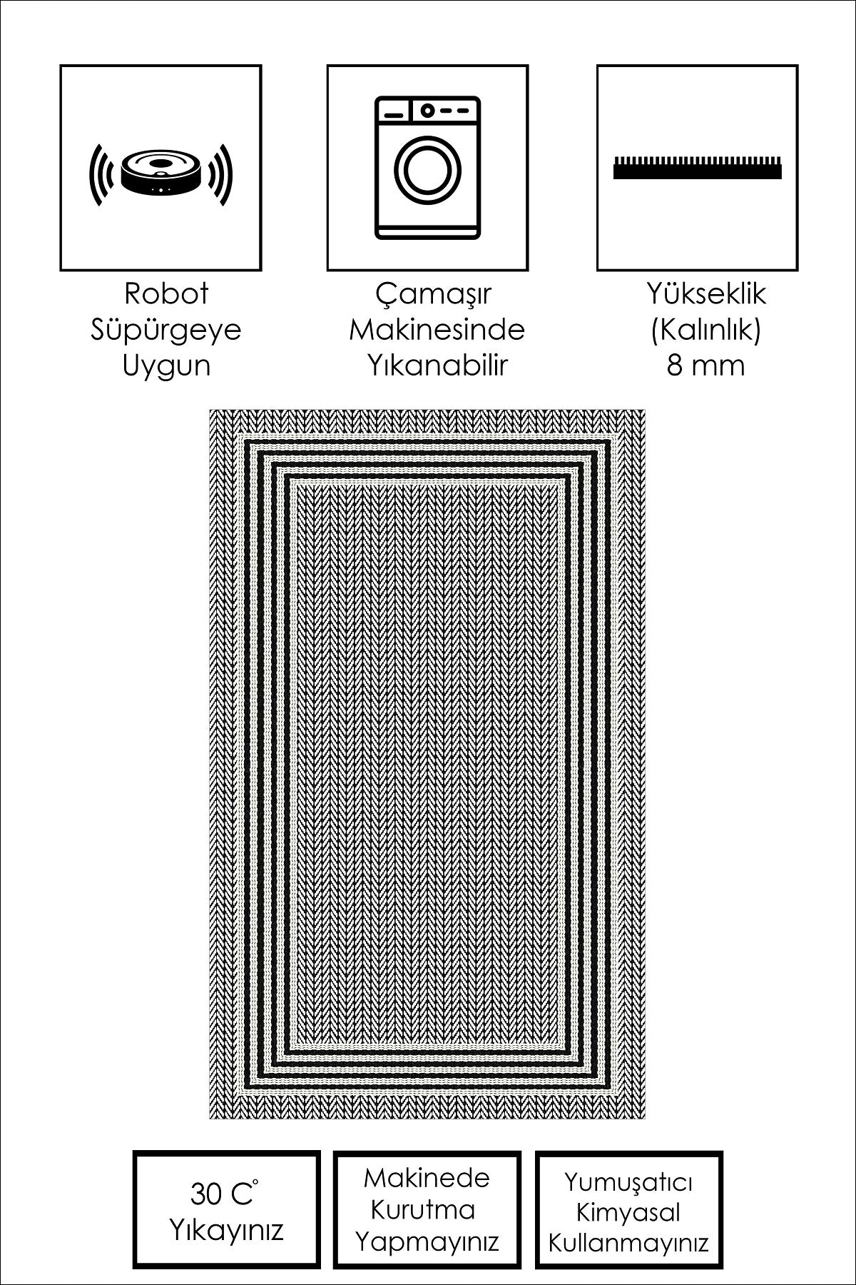 West Home Dijital Baskılı Yıkanabilir Kaymaz Taban Salon, Mutfak ve Yolluk Halısı-445 Grey