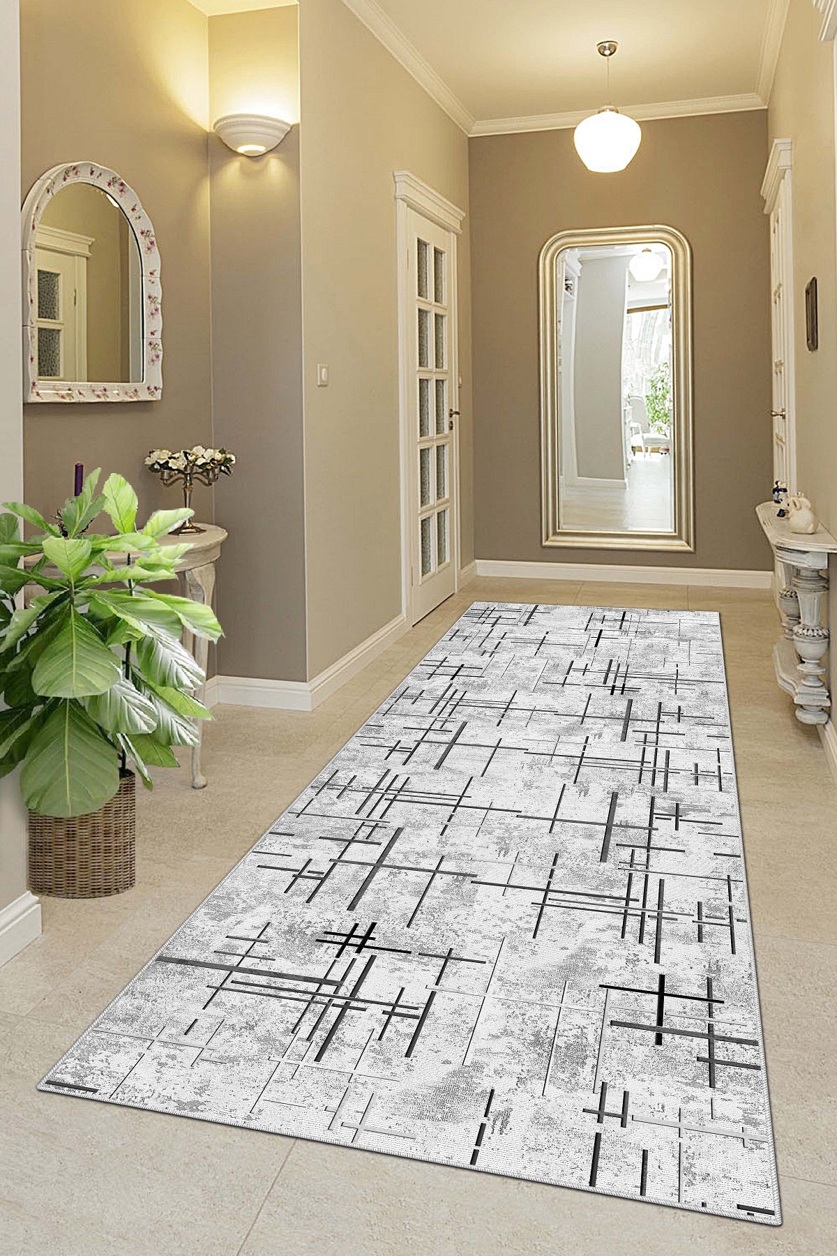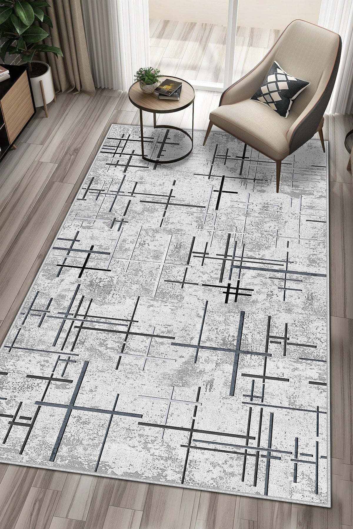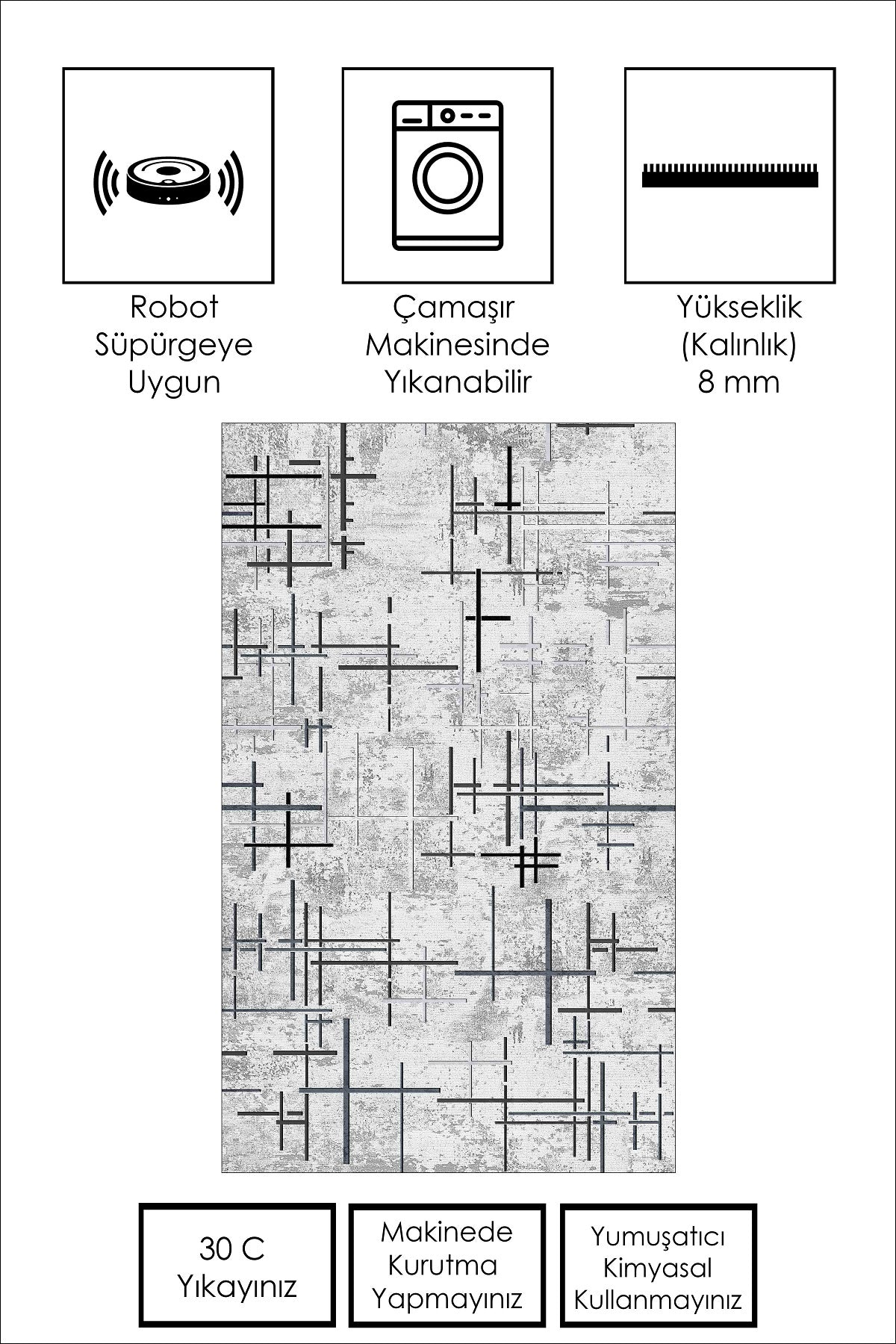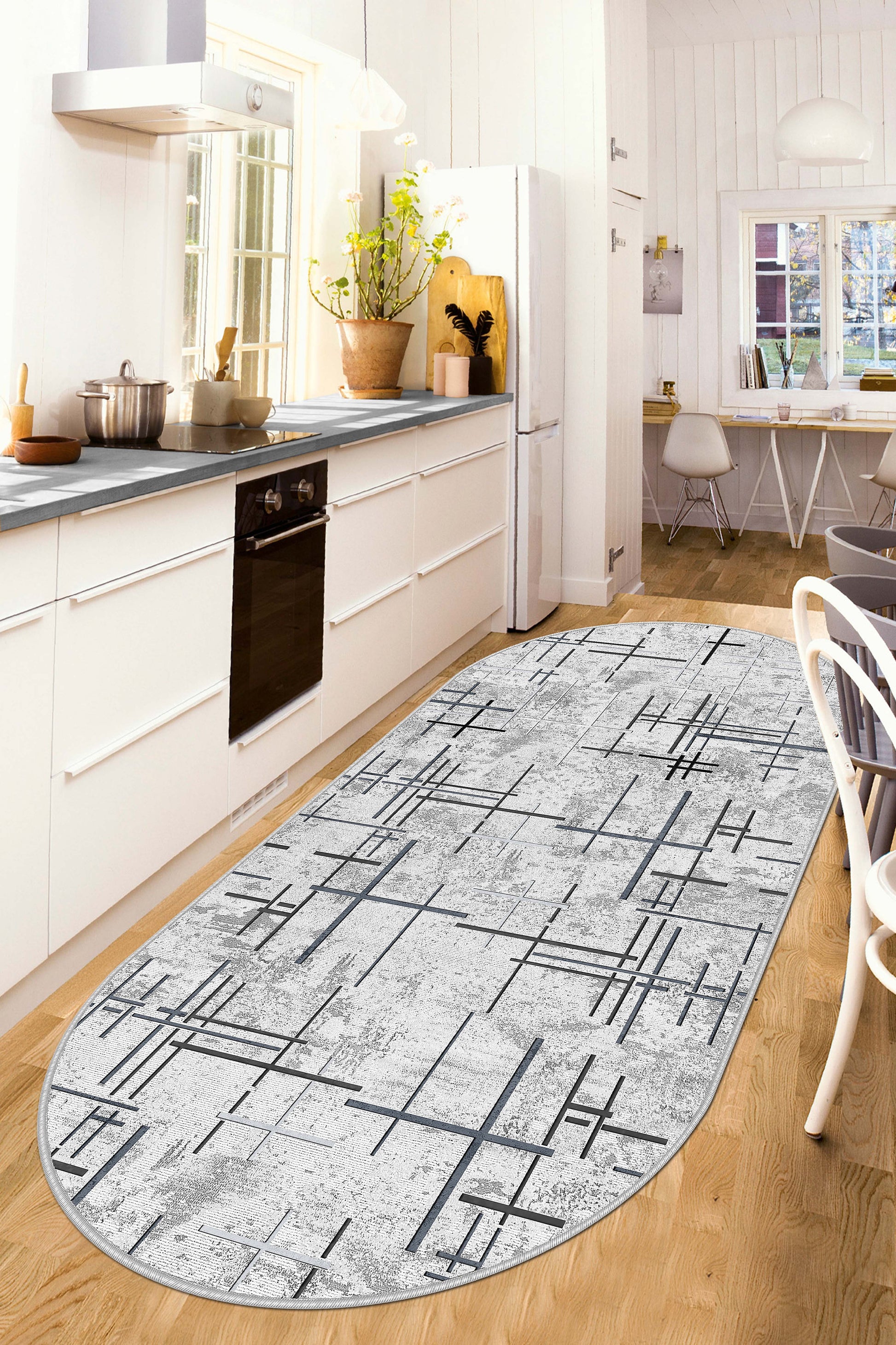 West Home Dijital Baskılı Yıkanabilir Kaymaz Taban Salon, Mutfak ve Yolluk Halısı-445 Grey