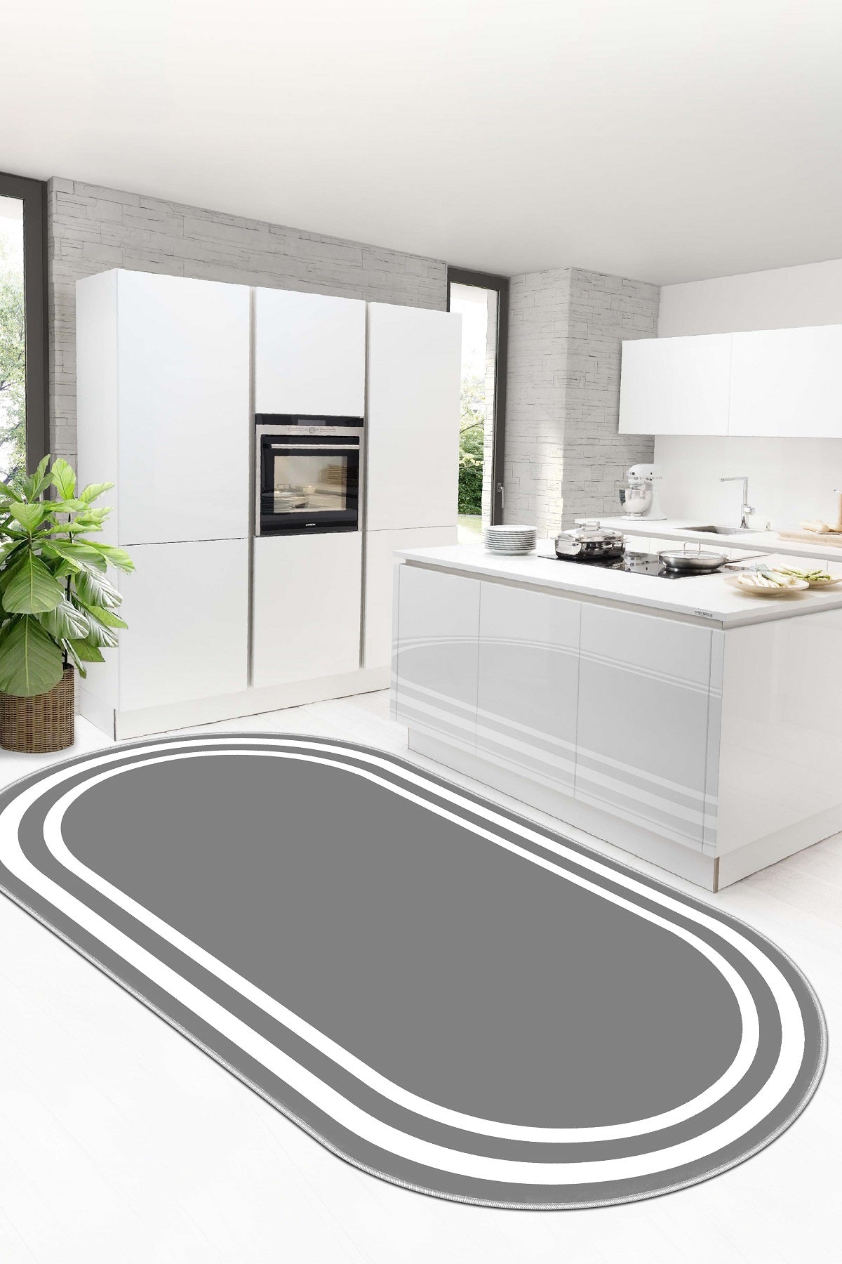 West Home Dijital Baskılı Yıkanabilir Kaymaz Taban Salon, Mutfak ve Yolluk Halısı-496 Grey