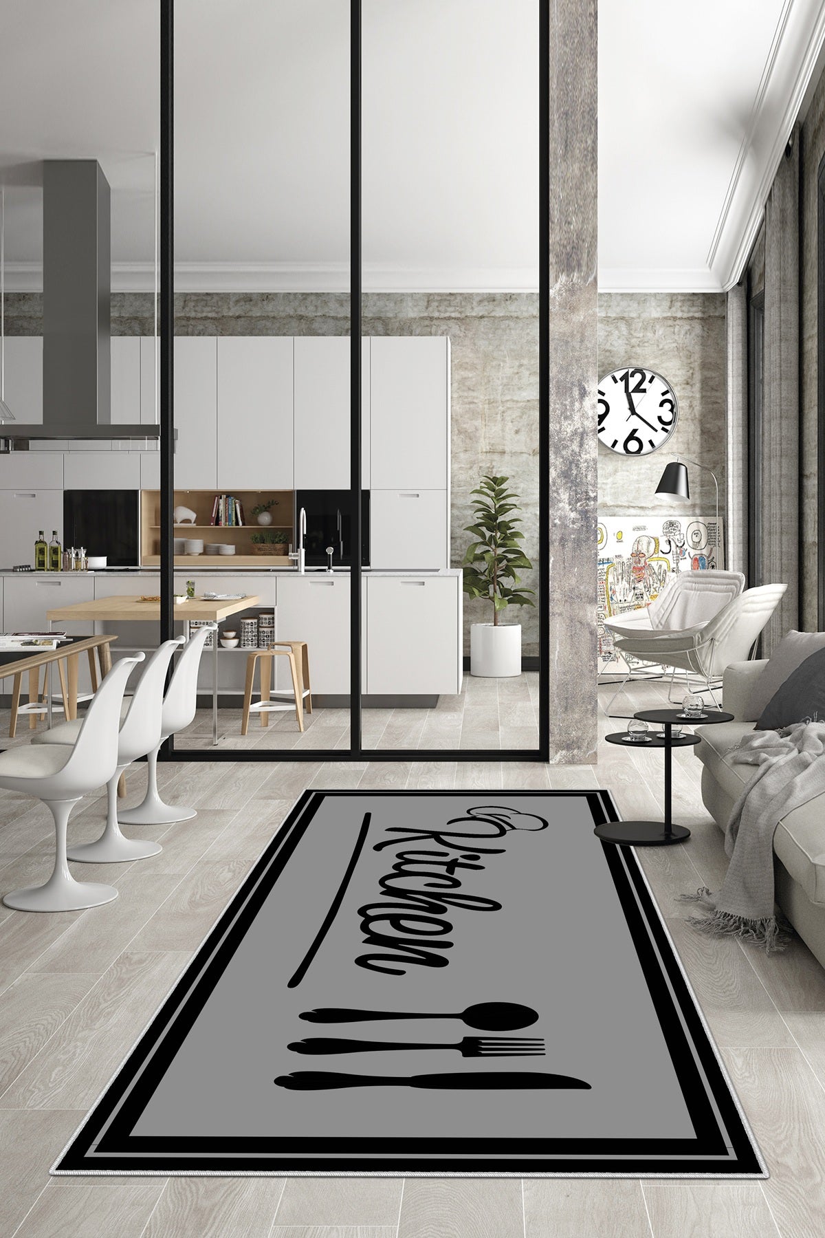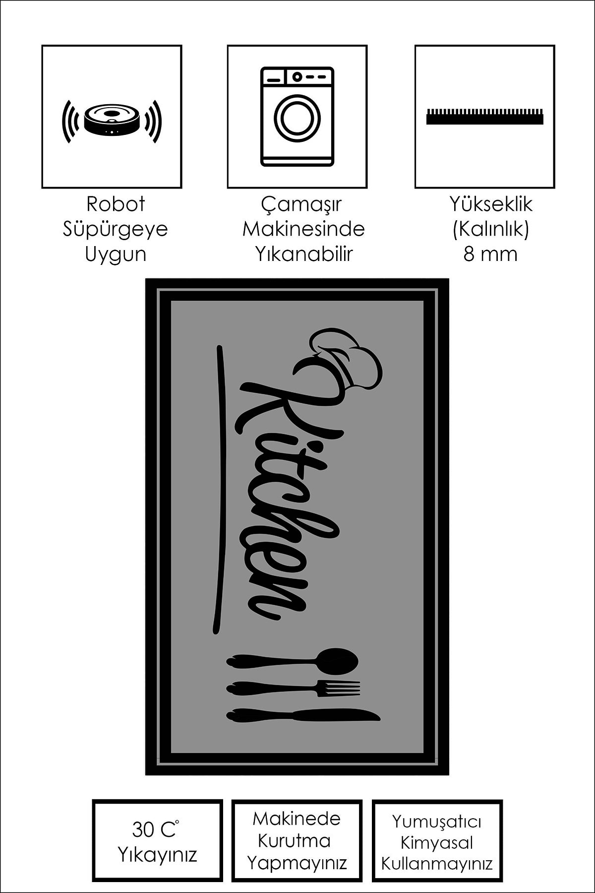 West Home Dijital Baskılı Yıkanabilir Kaymaz Taban Mutfak Halısı-498 Grey
