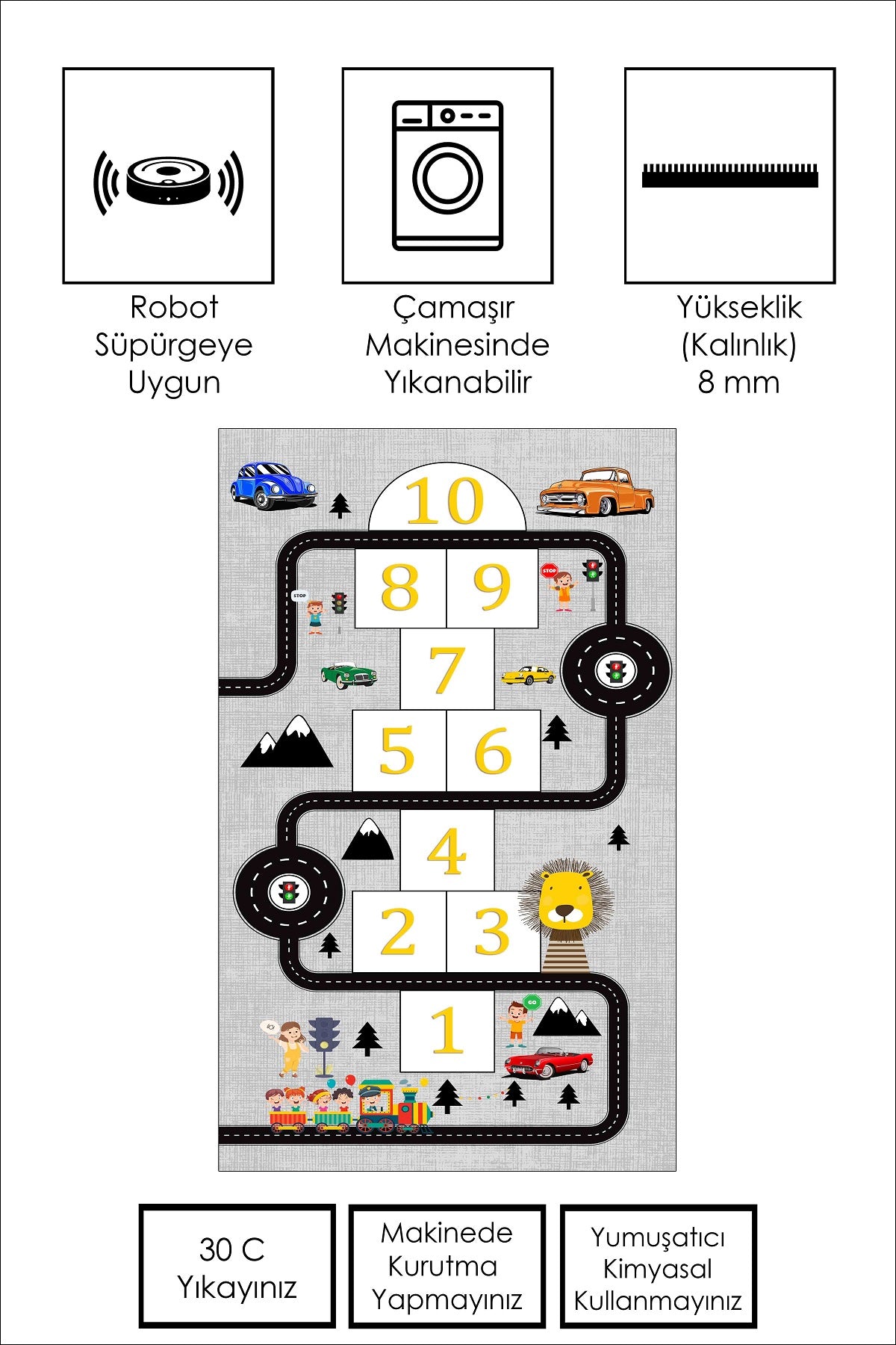 West Home Makinede Yıkanabilir, Çocuk Halısı-504 Grey