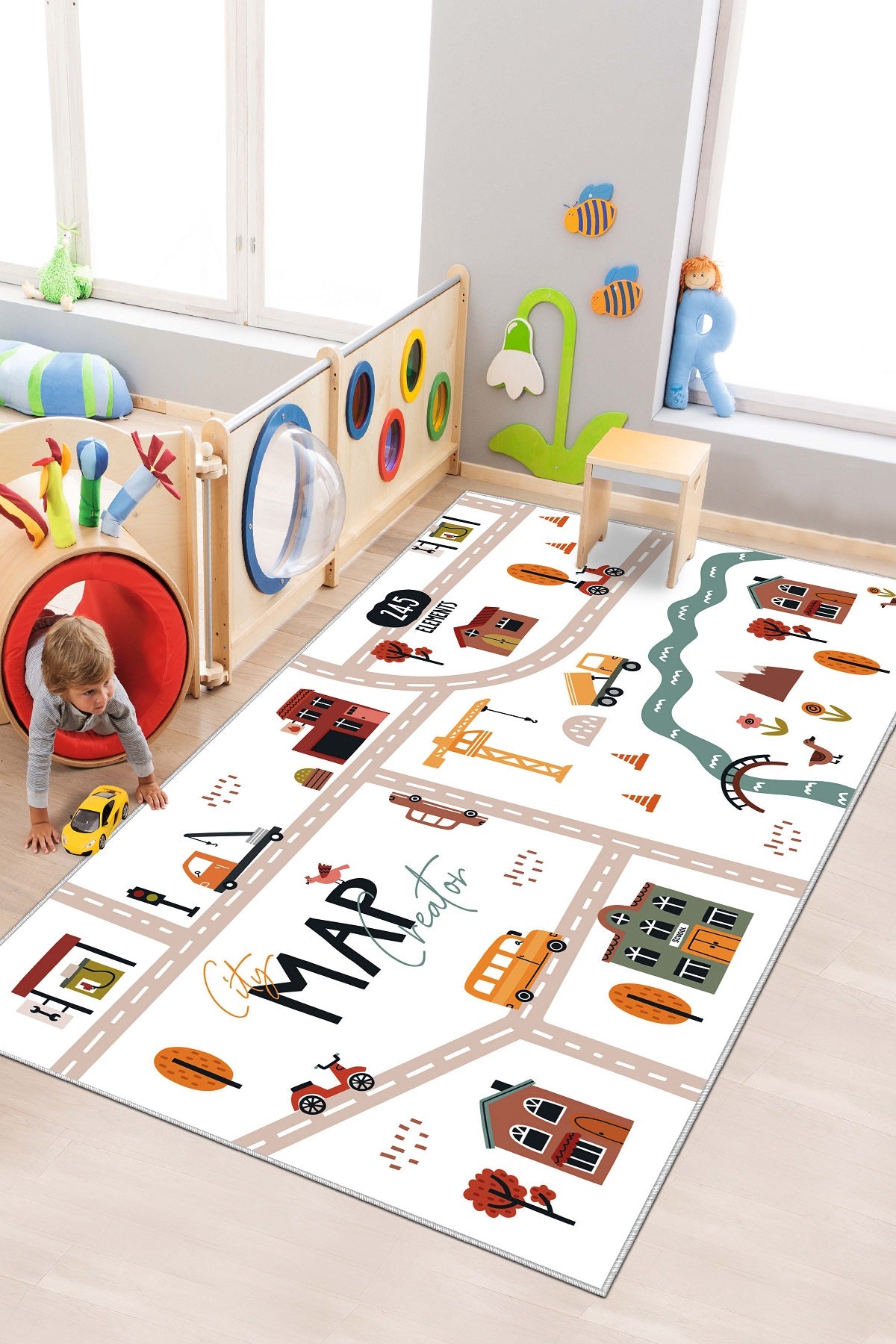 West Home Makinede Yıkanabilir, Çocuk Halısı-505 White