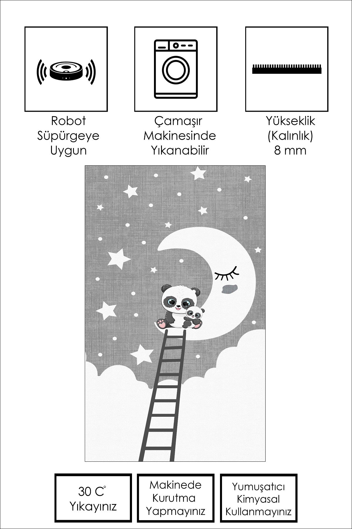 West Home Makinede Yıkanabilir, Çocuk Halısı-512 Grey
