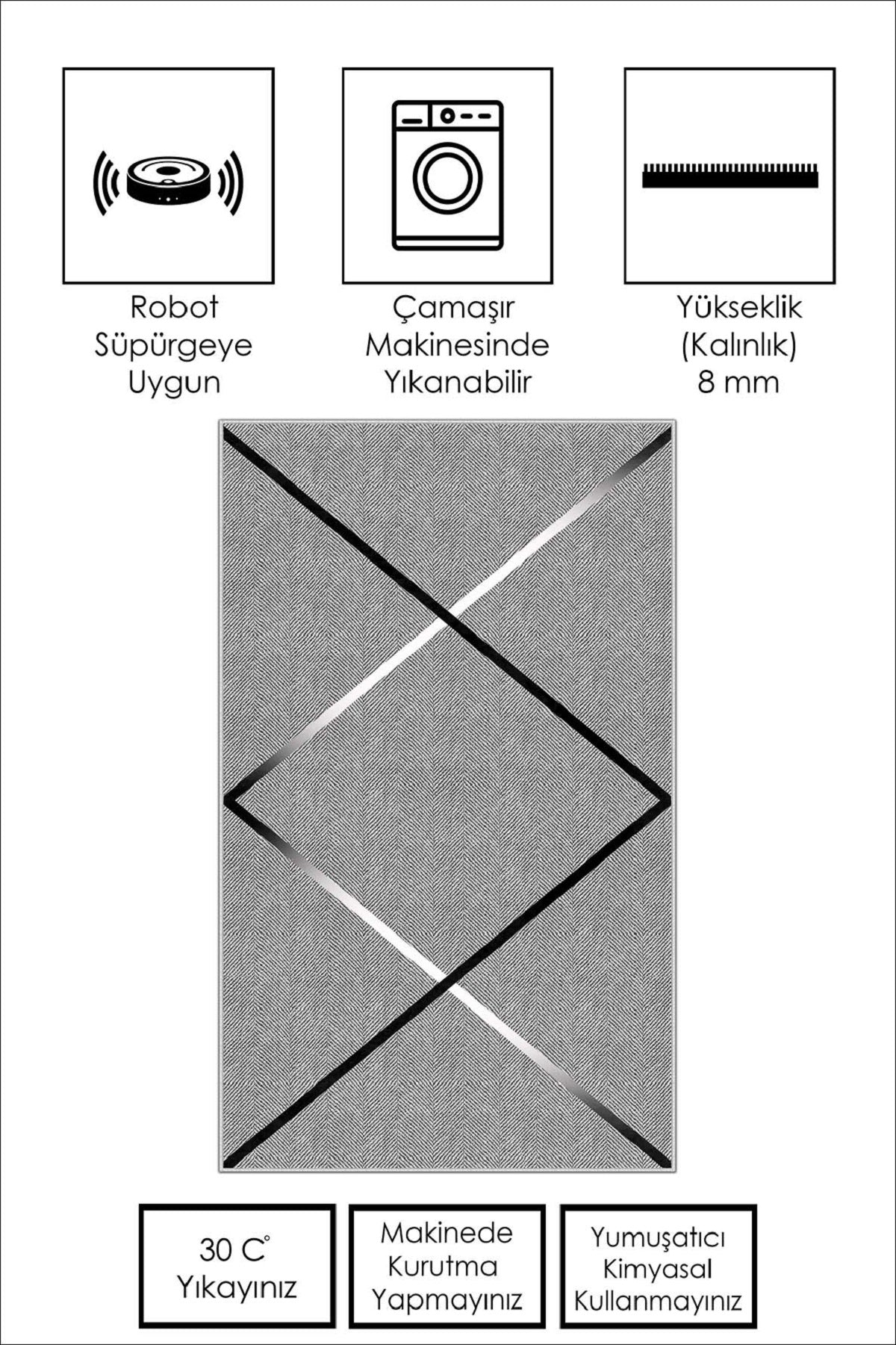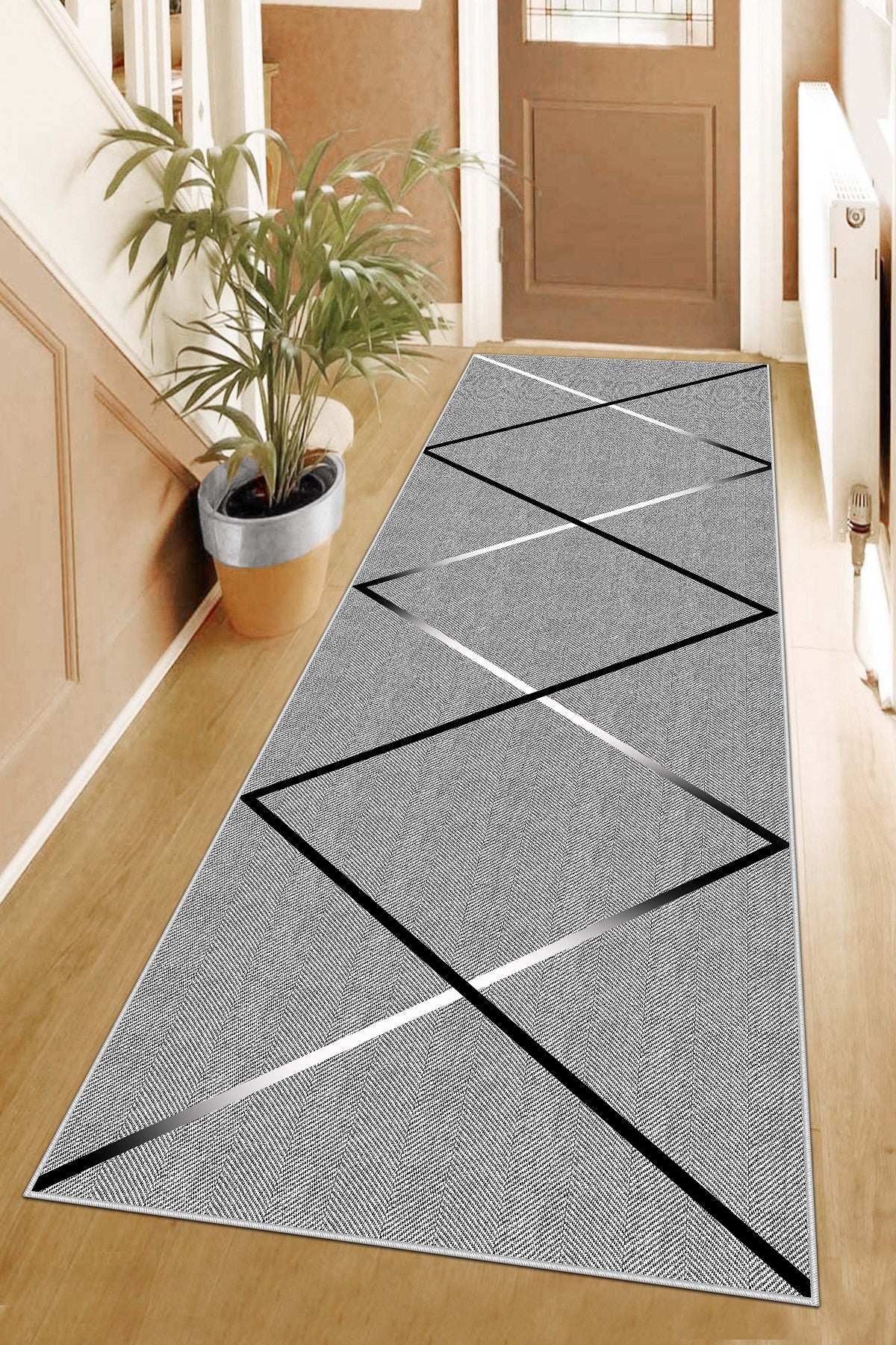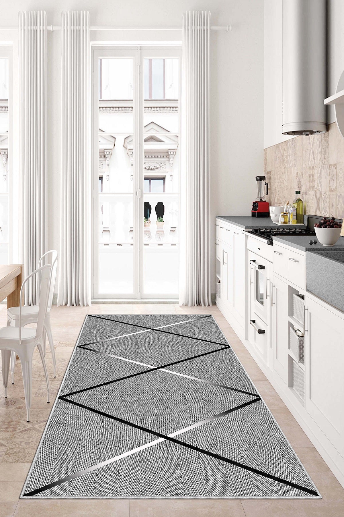 West Home Dijital Baskılı Yıkanabilir Kaymaz Taban Salon, Mutfak ve Yolluk Halısı-531 Grey