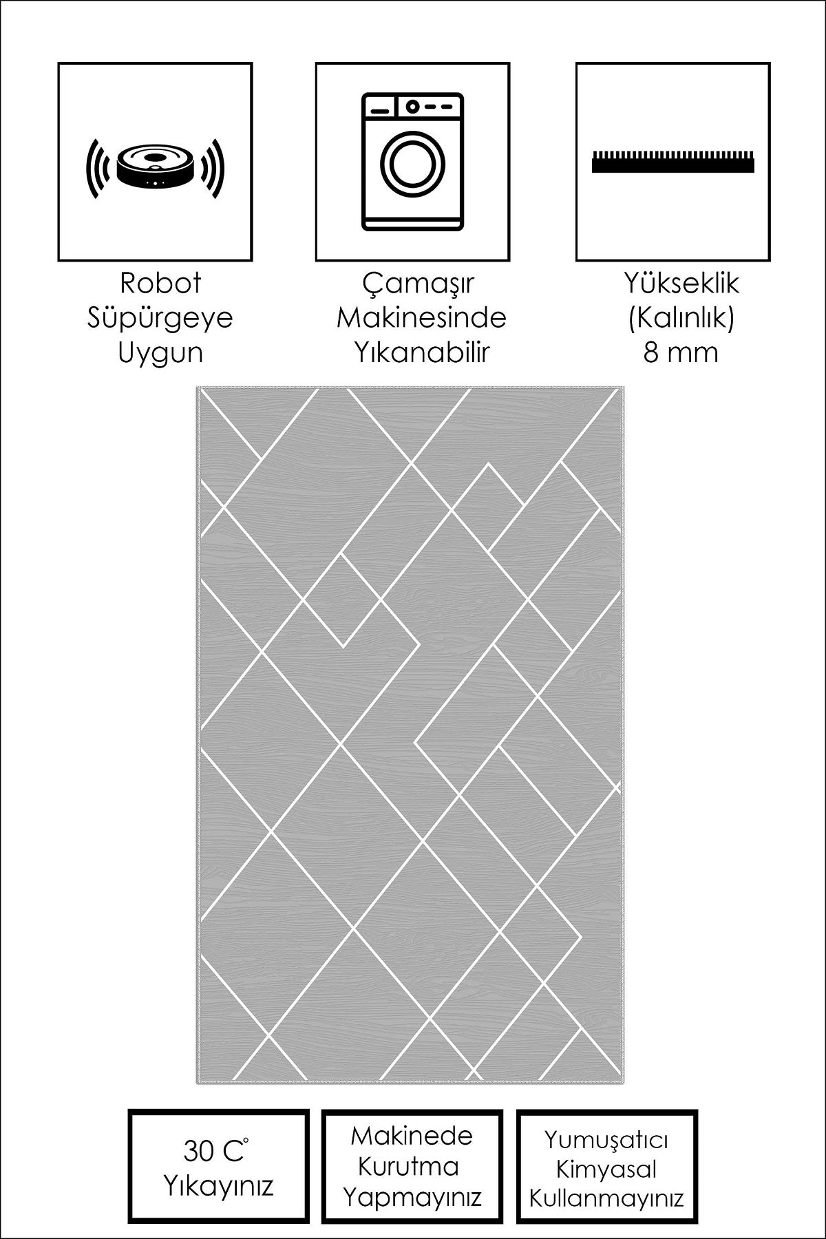 West Home Dijital Baskılı Yıkanabilir Kaymaz Taban Salon, Mutfak ve Yolluk Halısı-533 Grey