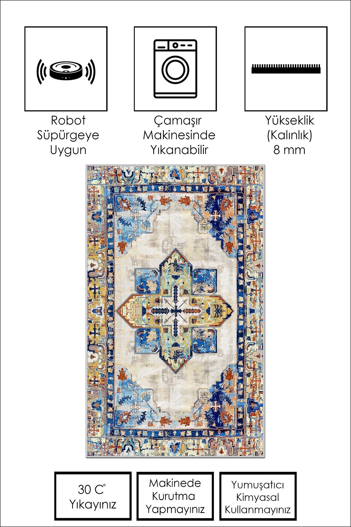 West Home Dijital Baskılı Yıkanabilir Kaymaz Taban Salon, Mutfak ve Yolluk Halısı-536 Multy