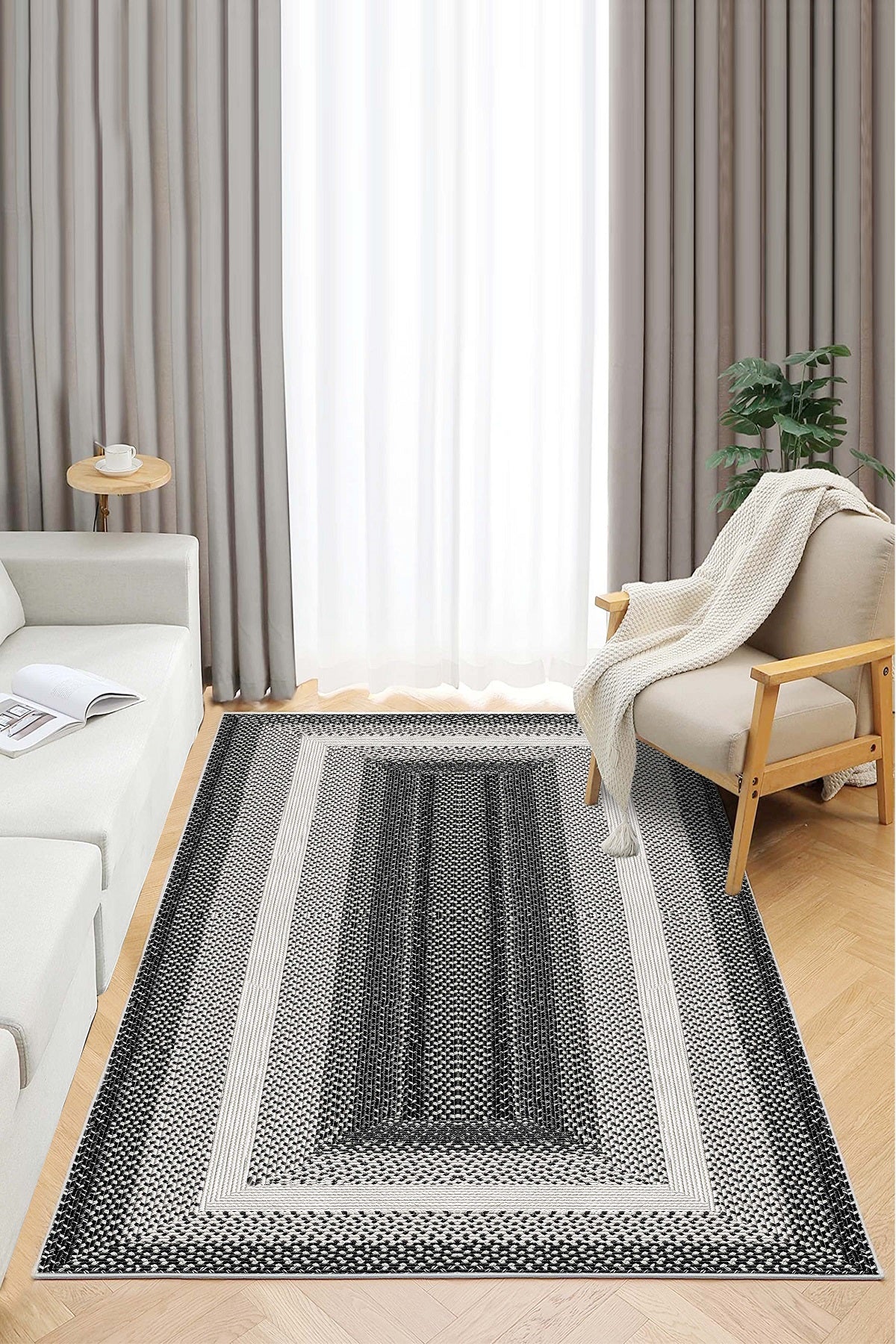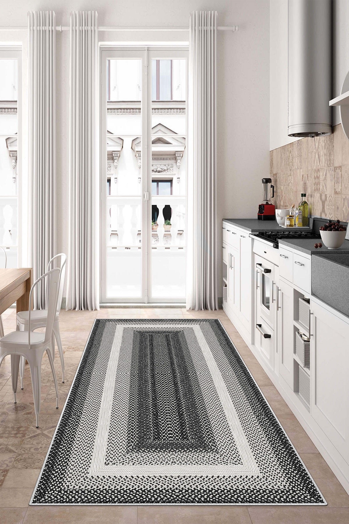 West Home Dijital Baskılı Yıkanabilir Kaymaz Taban Salon, Mutfak ve Yolluk Halısı-537 Black