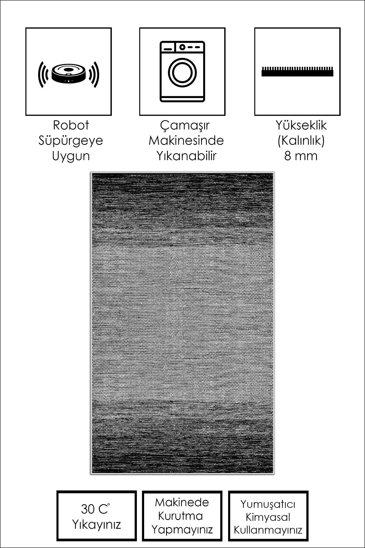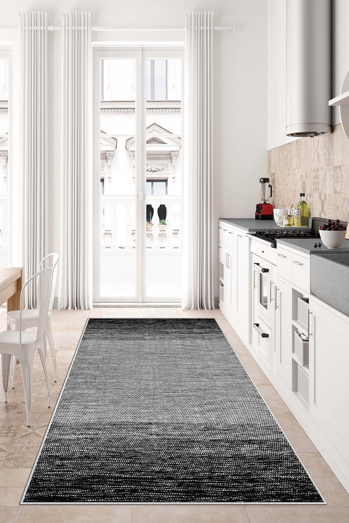 West Home Dijital Baskılı Yıkanabilir Kaymaz Taban Salon, Mutfak ve Yolluk Halısı-539 Black
