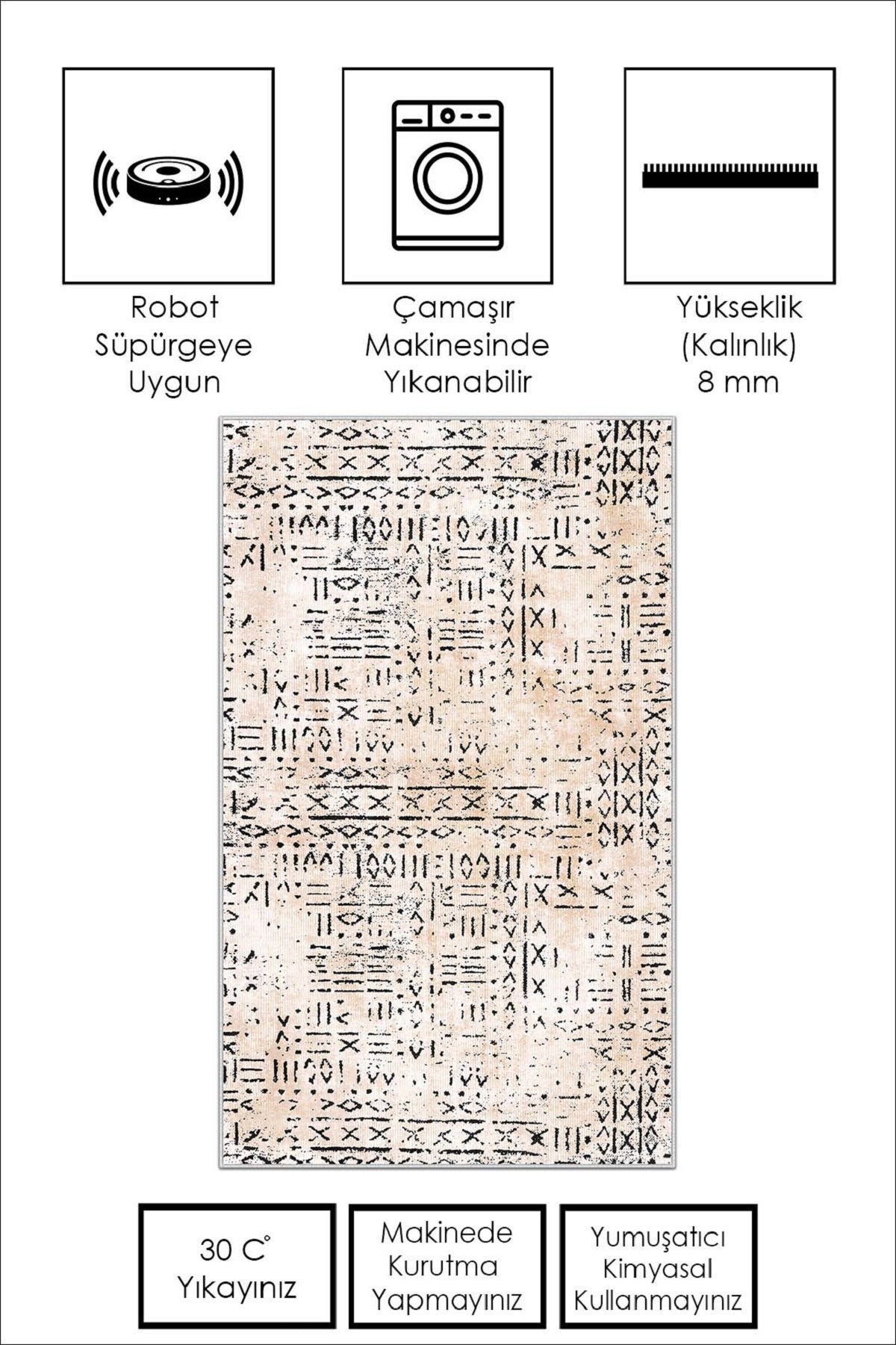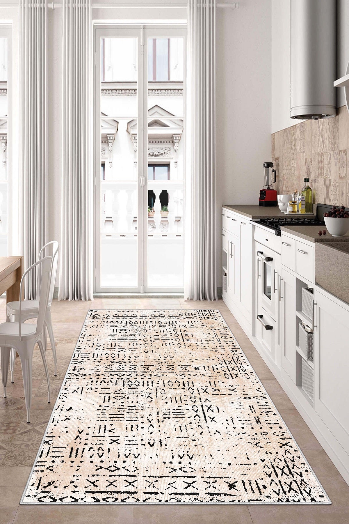 West Home Dijital Baskılı Yıkanabilir Kaymaz Taban Salon, Mutfak ve Yolluk Halısı-455 Beige