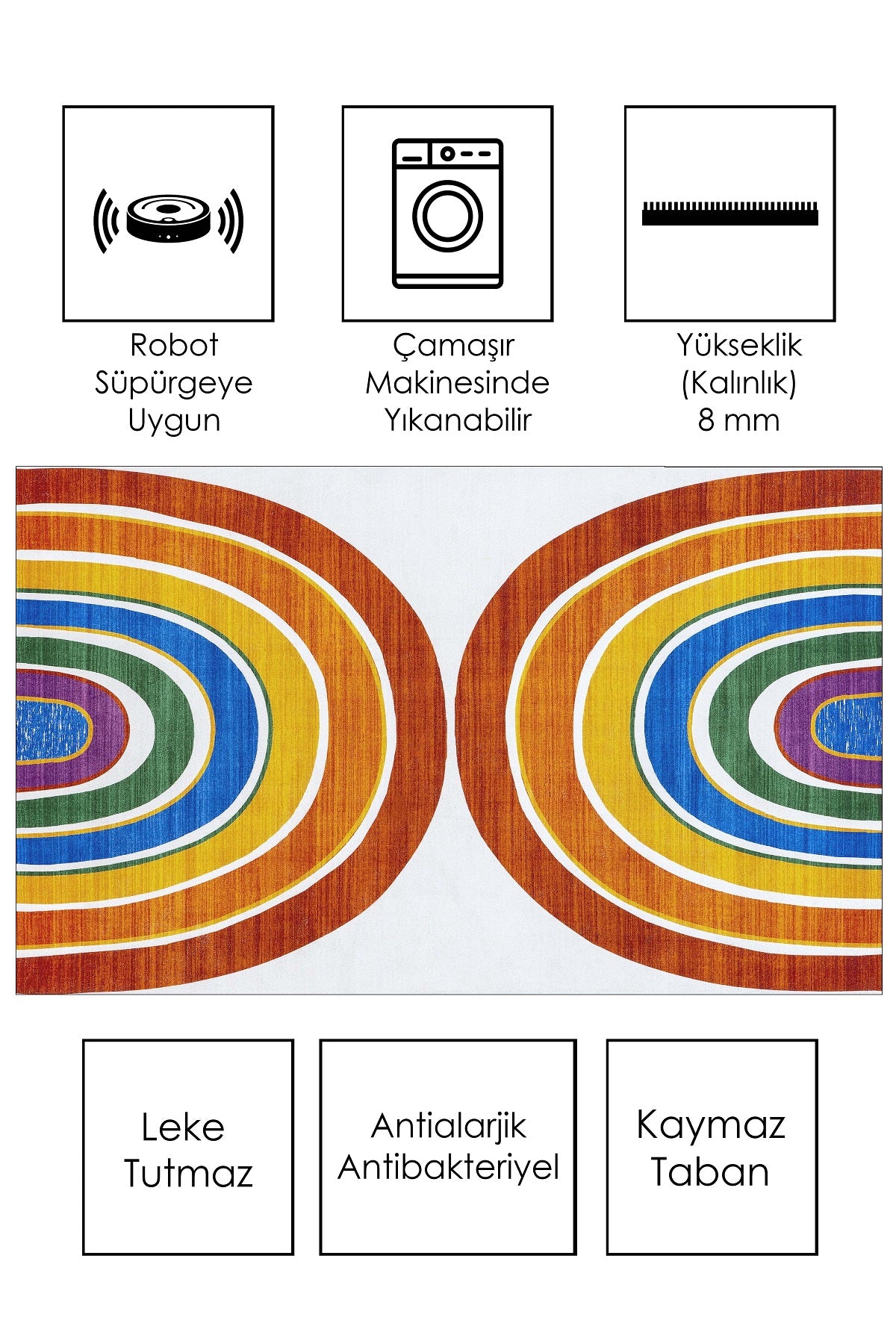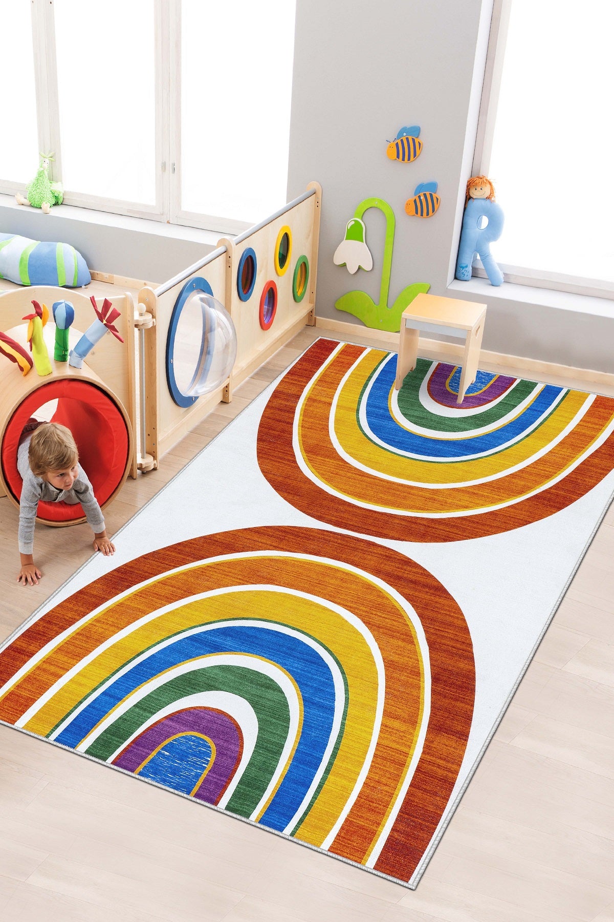West Home Dijital Baskılı Yıkanabilir Kaymaz Taban Çocuk Halısı-573 Multy
