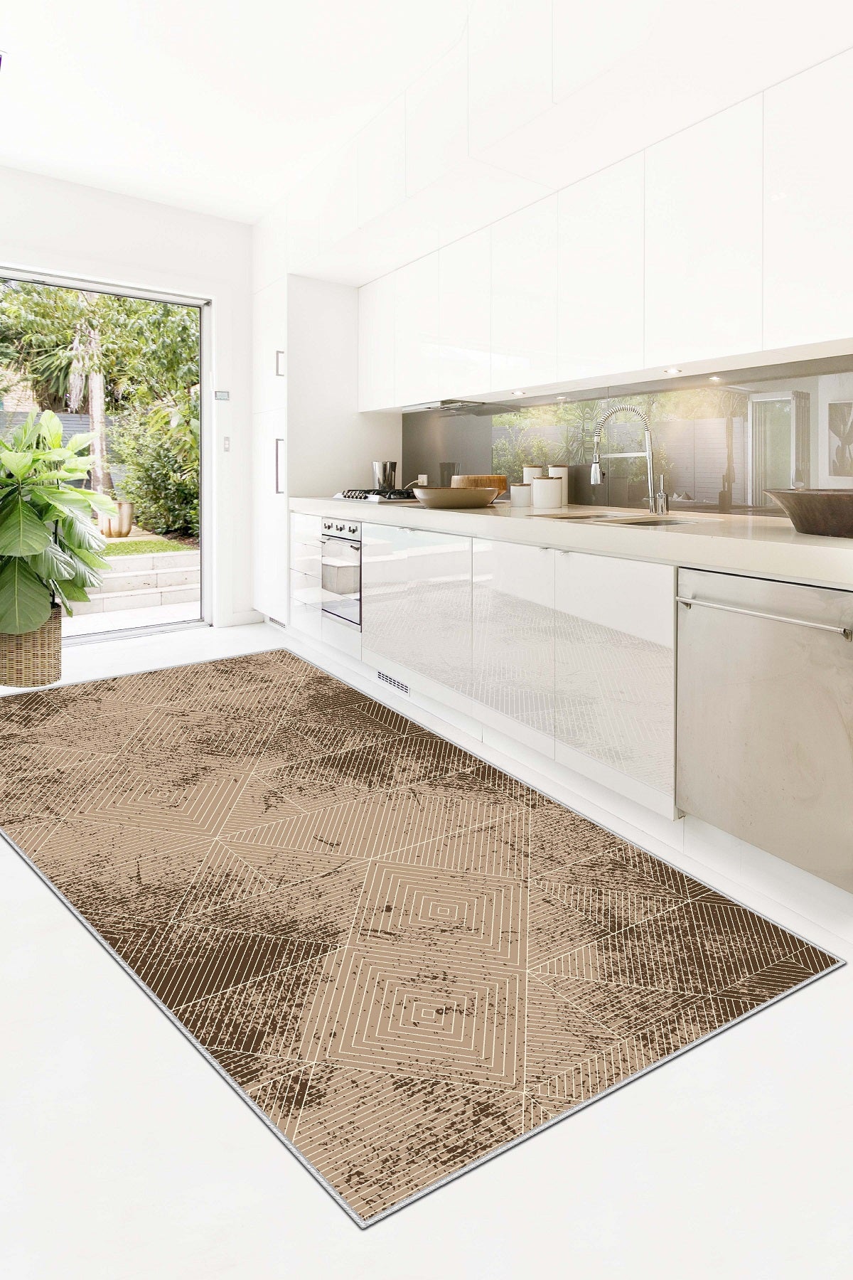 West Home Dijital Baskılı Yıkanabilir Kaymaz Taban Salon, Mutfak ve Yolluk Halısı-586 Beige