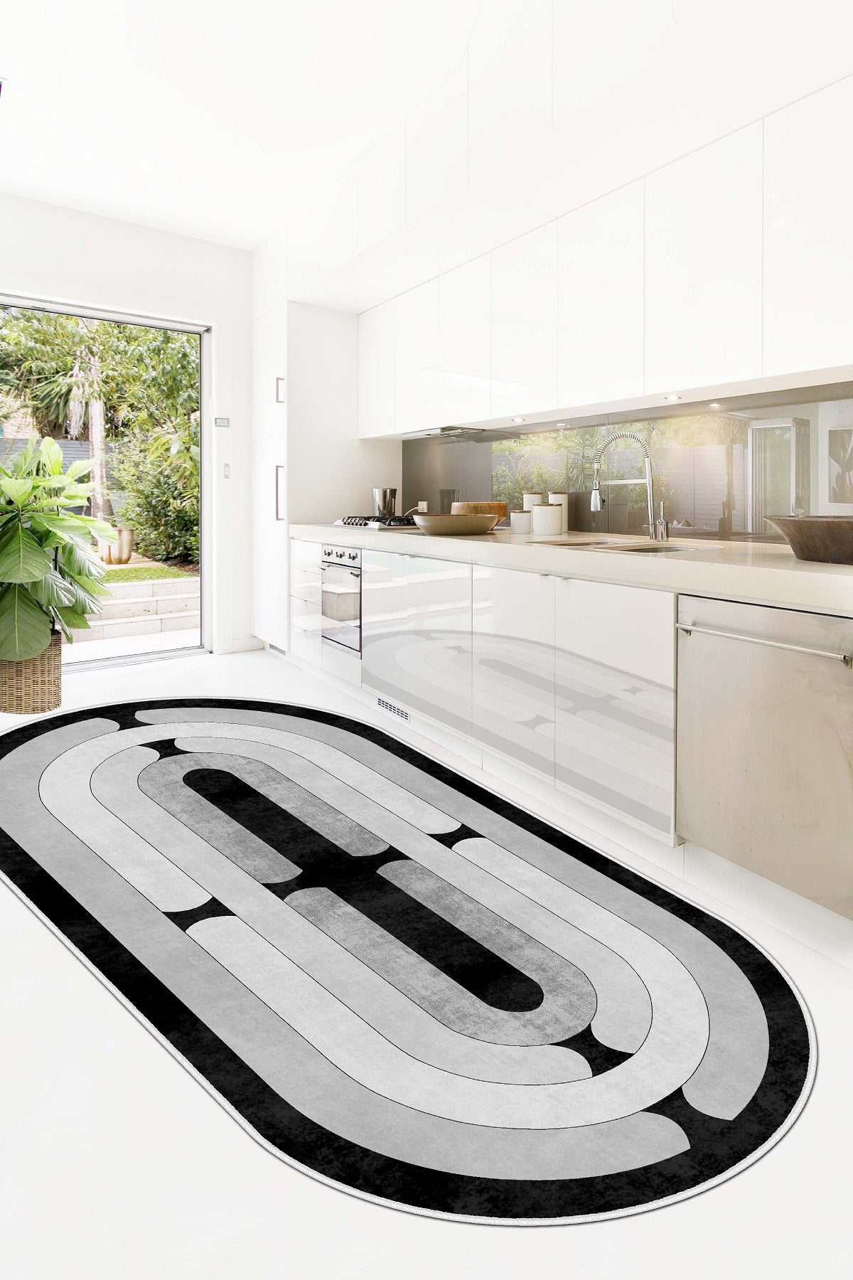 West Home Dijital Baskılı Yıkanabilir Kaymaz Taban Salon, Mutfak ve Yolluk Halısı-577 Grey