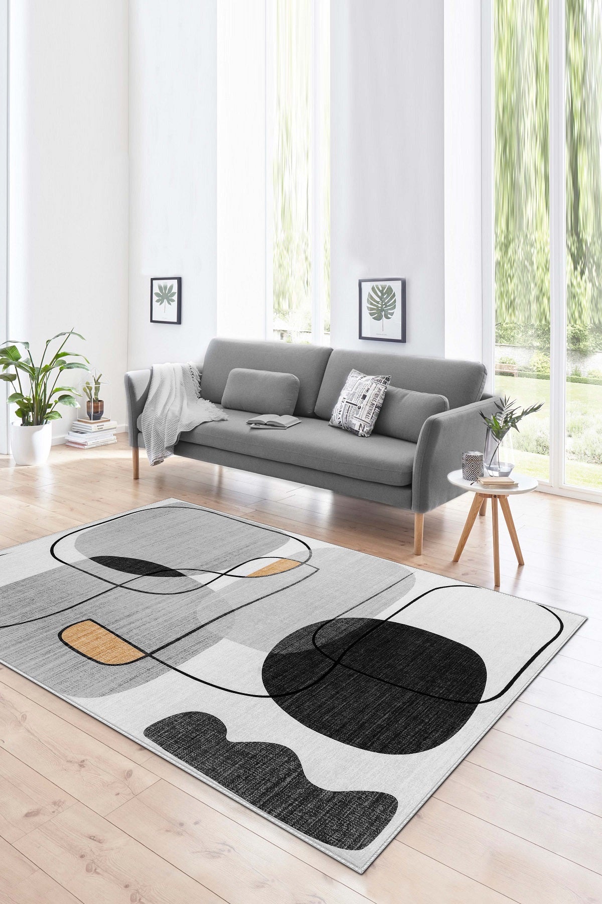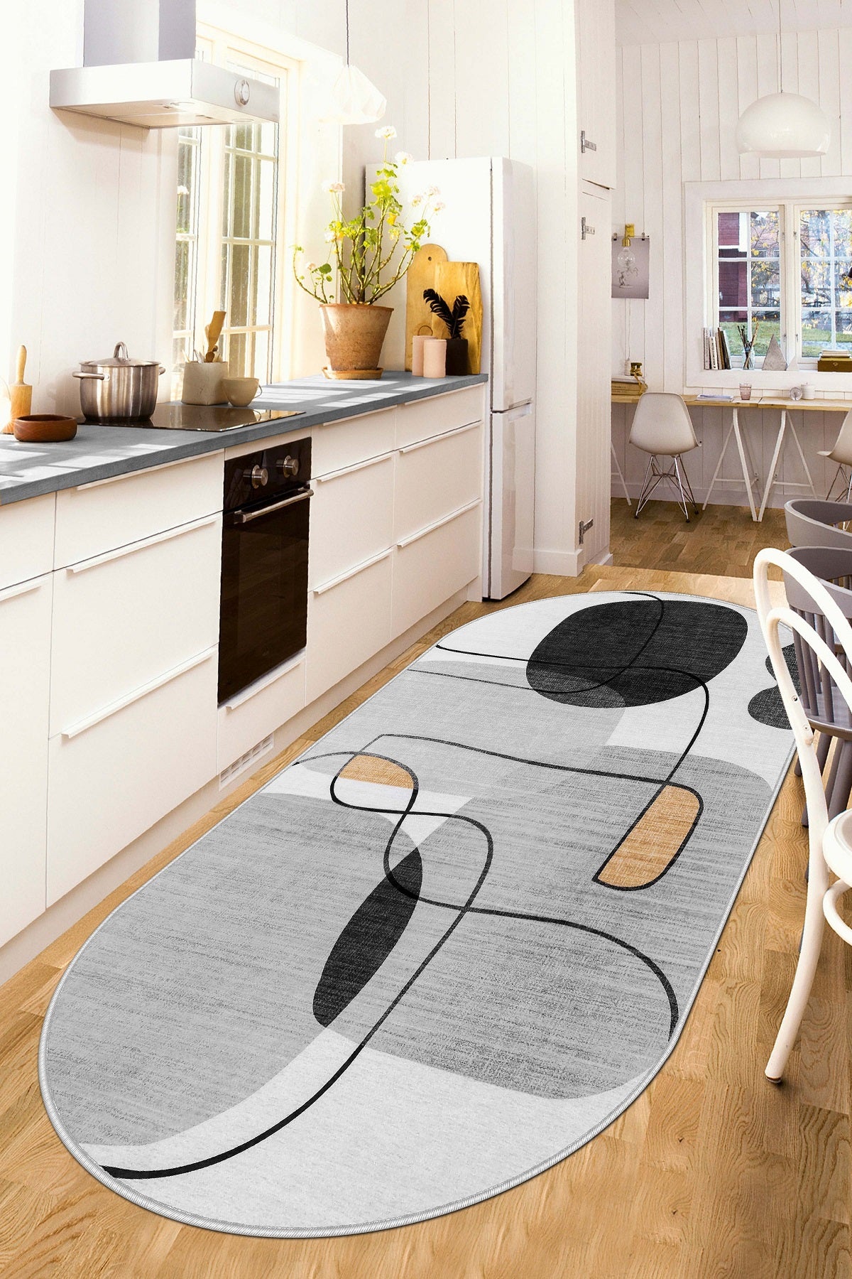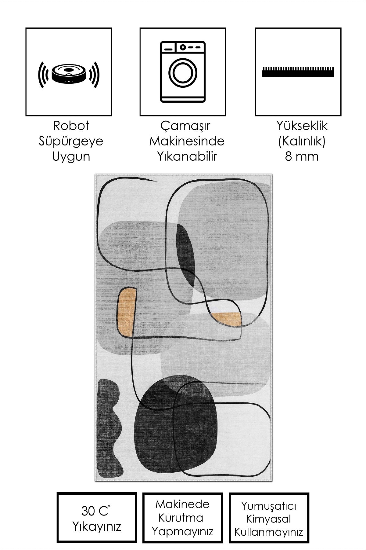 West Home Dijital Baskılı Yıkanabilir Kaymaz Taban Salon, Mutfak ve Yolluk Halısı-578 Grey